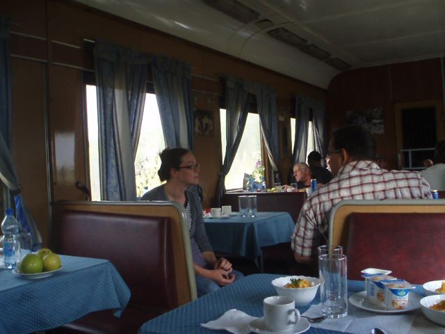 다행히 식당칸에서 환전이 가능해서 음식을 시켰는데 음식값이 어마어마해 우리가 시킨 것은 겨우 샐러드와 요거트 정도. 샐러드 하나로 둘이 나눠 먹고는 멀찍이 앉아 있던 아랍왕자 같이 생긴 영국 남자에게 Hi?라는 인사를 건네고 둘이 앉아 앞으로의 여정을 얘기해 보았다. 혼자 이츠크루크에 가려니 심심했고 그리고 무엇보다 약간 정이 든 몽골 여자애와 이대로 헤어지기도 아쉽고, 기차표를 다시 사서 자기 동네로 가자는 몽골 여자애의 의견에 찬성했다.
