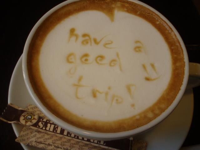 쌀이 먹고 싶었지만 쌀 대신 감자가 있어서 감자와 고기, 야채 등을 골라 자리를 잡아 허겁지겁 음식을 먹었다. 이때만 해도 초창기 때라 으깬 감자가 어찌나 맛이 좋던지... 나중에는 감자만 보면 속이 쓰라릴 정도로 질려 버렸지만. 식후엔 역시 커피. 커피가 미치도록 좋았던 그때에는 각 나라를 돌며 커피의 맛을 음미하는 것이 크나큰 행복 중 하나였었다. 가만, 이제 론니플래닛에 나온 카페 중 한 곳을 들러 커피를 마셔보고 싶은데 어디가 좋을까... traveler's coffee 당첨. 오래간만에 그리 잘하지는 못하지만 영어도 쓰고 카푸치노도 마시고. ' have a nice trip'이라고 적어주기까지 하니 정말 최고였다.