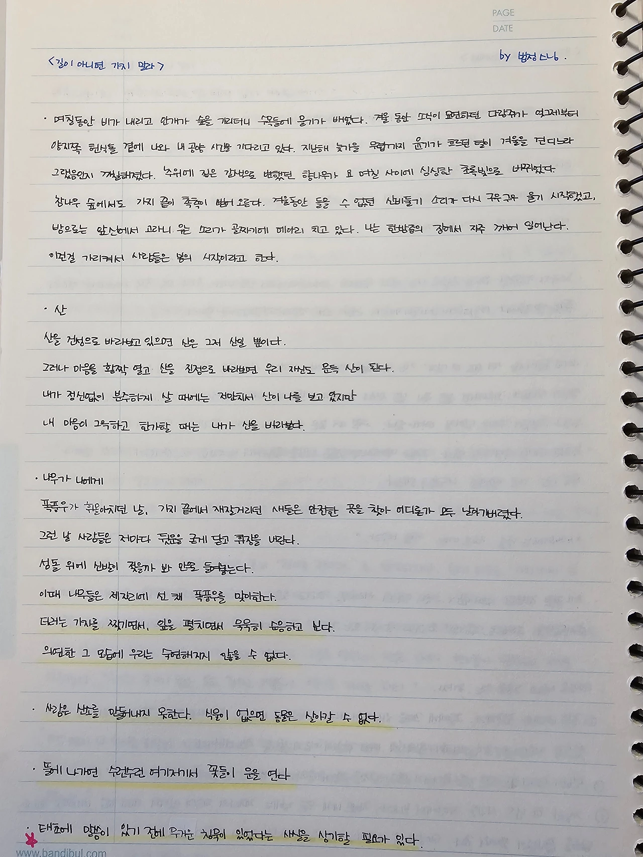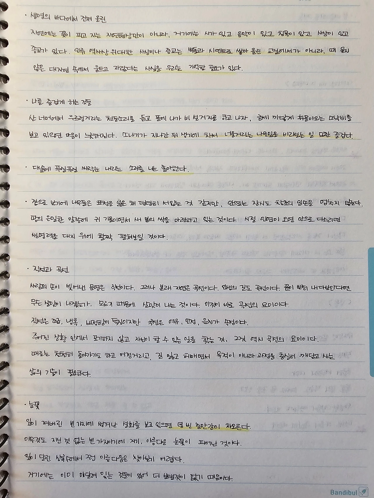 <길이 아니면 가지 말라>는 꽤 많은 구절을 필사한 책이었는데, 그중에서도 자연이 가르쳐 준 위대한 진리에 대한 부분을 모아보았다.
