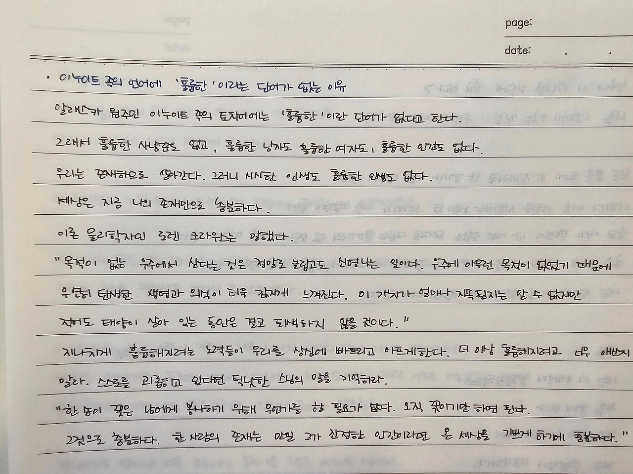 이누이트족의 언어에는 '훌륭한'이라는 단어가 존재하지 않는다고 한다. 어린 시절