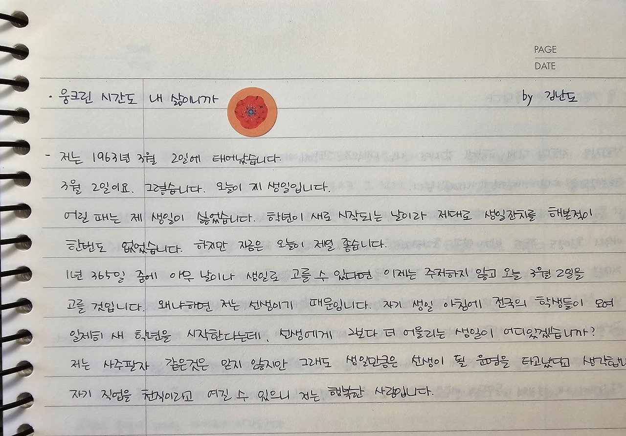 저는 사주팔자 같은 것은 믿지 않지만 그래도 생일만큼은 선생이 될 운명을 타고났다고 생각합니다. 자기 직업을 천직이라고 여길 수 있으니 저는 행복한 사람입니다.