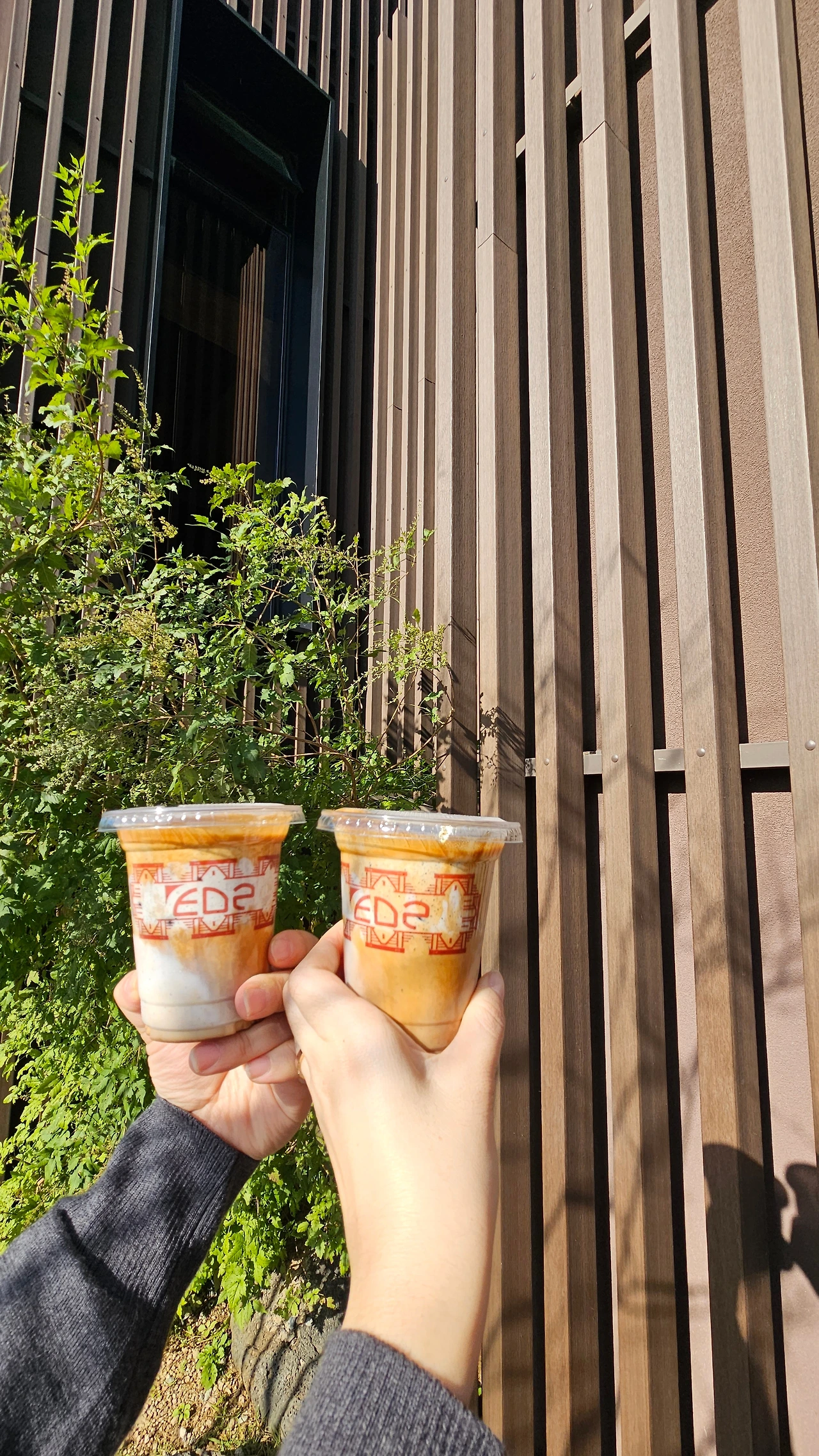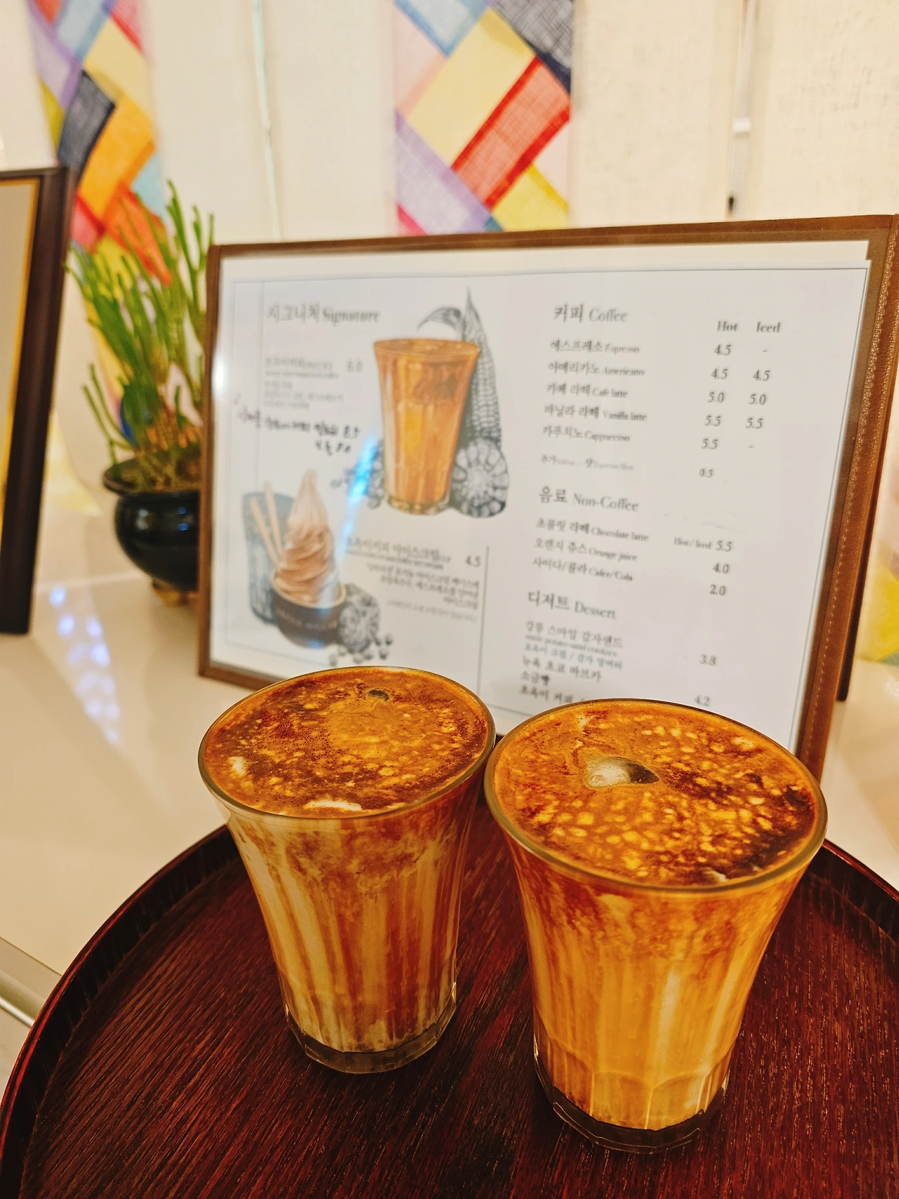 우리가 초당 옥수수커피 2잔과 초당 옥수수 소금빵을 주문했다. 소금빵은 나오자마자 순삭 해서 안타깝지만 사진으로 남기니 못했다. 겉은 소보로 빵처럼 달달하고 바삭한 식감에 안에는 소금빵 특유의 버터리함이 가득해 풍미가 좋았다.