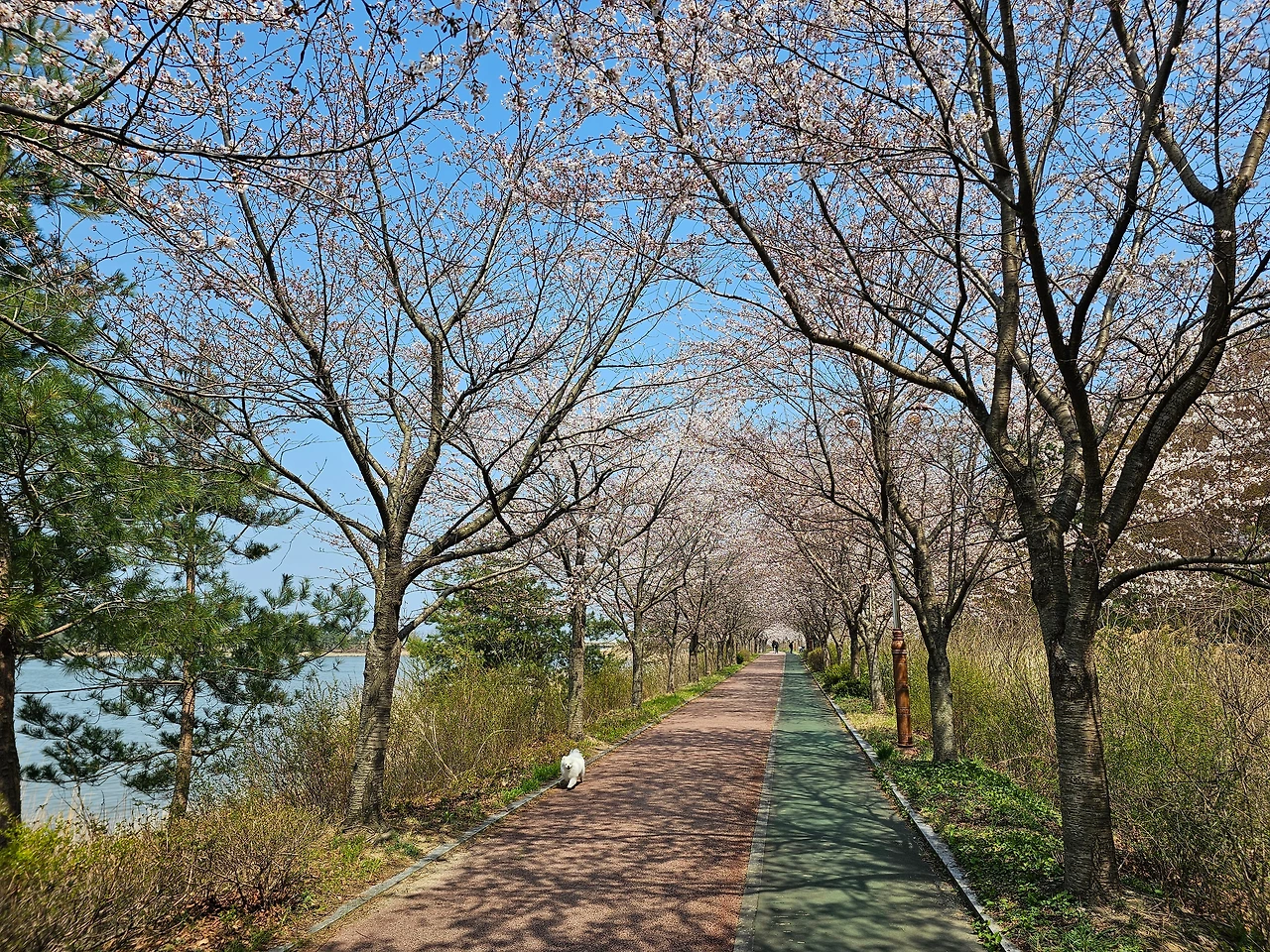 한눈에 봐도 관광객으로 보이는 사람들은 없었고, 편한 차림으로 산책 나온 주민분들이 전부였다. 여느 때와 같이 운동하시는 분들, 강아지와 함께 산책 나온 중년의 부부 그리고 올해 강릉에서 처음으로 벚꽃 구경을 나온 우리도 있었다. 올해는 날이 쌀쌀해 예년보다 벚꽃 개화시기가 늦어졌고, 이곳도 아직 만개는 아니었다. 오래 기다린 만큼 강릉에서 보는 첫 벚꽃이 귀하게만 느껴졌다. 오늘 들러야 할 곳이 많았기에 향호 한 바퀴를 다 돌지는 못하고 중간에 돌아왔지만, 그래도 여기서 맡았던 벚꽃 내음은 잊지 못할 것 같다.