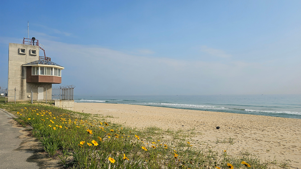그냥 들어가기 아쉬워 지경해변으로 향했다. 보아주는 이 없어도 한낮의 바다에는 금계국과 갯메꽃이 한창이었다. 향호해변까지 왕복하며 슬로 조깅을 해 볼 생각이다. 신나게 운동하기 위해 빠른 비트의 음악들을 야금야금 모아둔 것이 빛을 발한다. 이렇게 탄생한 플레이 리스트의 제목은 무려 '달려라! 이나'였다.