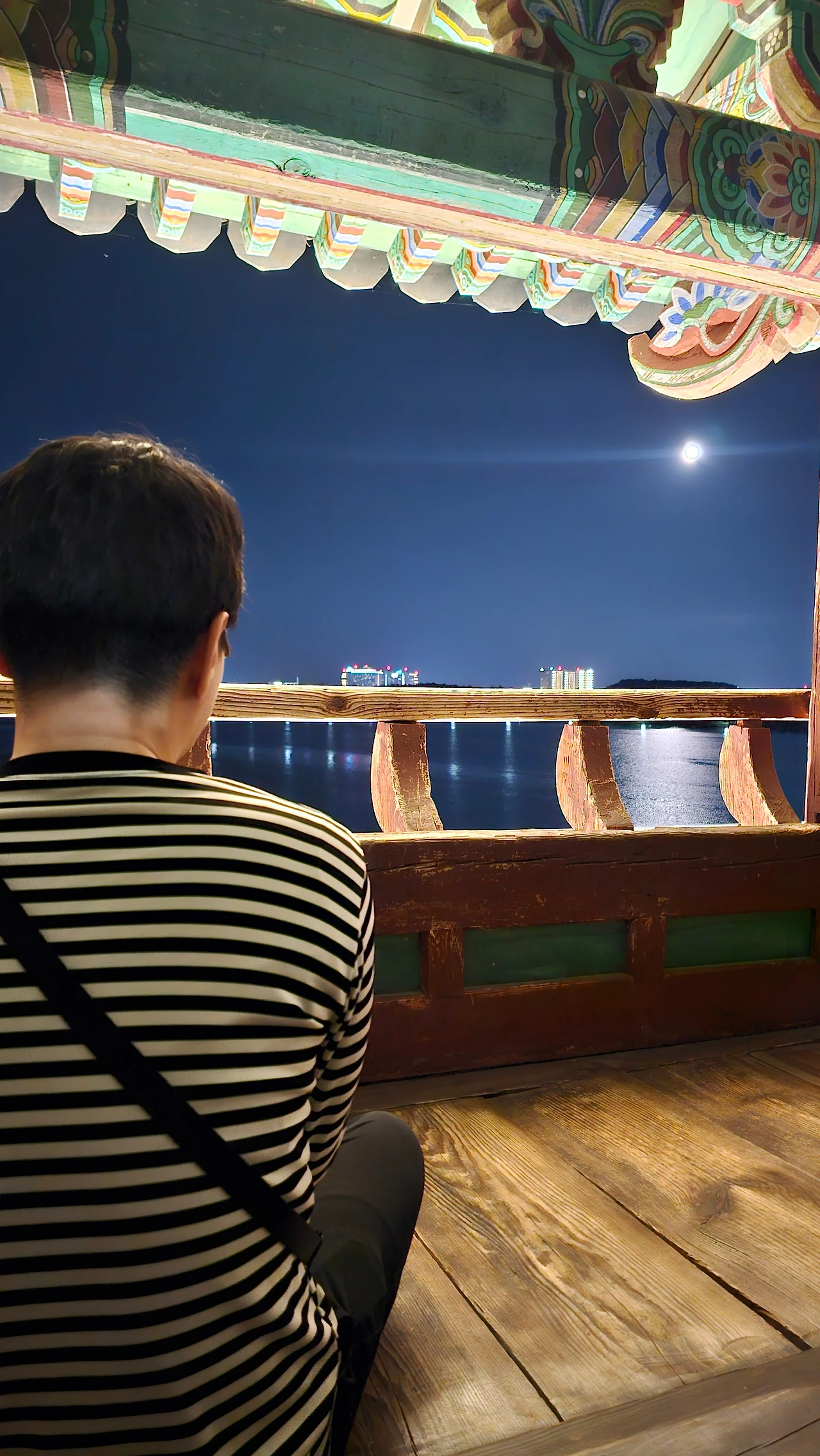 마지막으로는 보름달 보러 경포대에 오른 것이다. 이 역시 무계획이었는데, 밥 먹고 산책하다 달이 예뻐서 좀 더 주변이 어둡고 환한 달빛을 볼 수 있는 장소를 찾아 출발했다. 처음에는 경포대 생각을 못하고 인적 드문 연곡으로 올라갔다. 바다 위에 총총히 뜬 달이 참 아름답고, 달빛이 비친 물도 거룩하게 느껴졌다. 무언가 제대로 달맞이를 해보고 싶다는 생각에 경포대로 향했다.