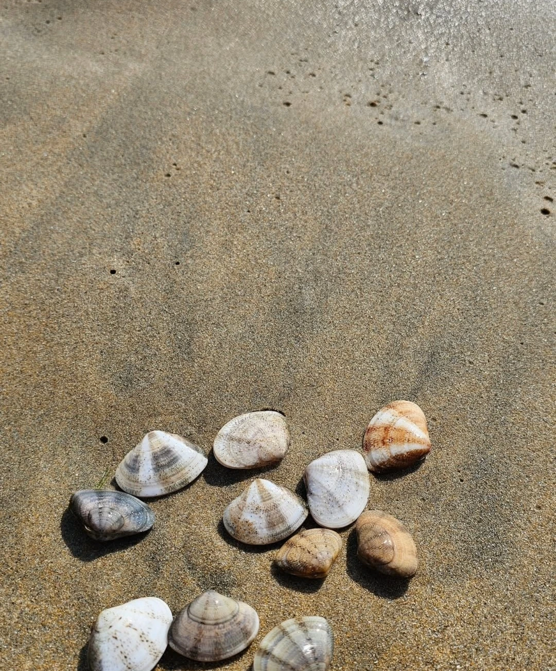 호다닥 큰 수건 2개와 아쿠아 슈즈를 챙겨 바다로 향했다. 문을 닫은 펜션 바로 앞에 있는 곳이었고 양쪽에는 절 그리고 군부대여서 사람들이 찾는 해변이 아니었다. 째복이 사람보다 많다고 했는데, 우리가 갔던 이른 아침에도 어르신 두 분이 나와서 조개를 잔뜩 주워가셔서 그런지 소소하게 탐사할 수 있는 정도였다.