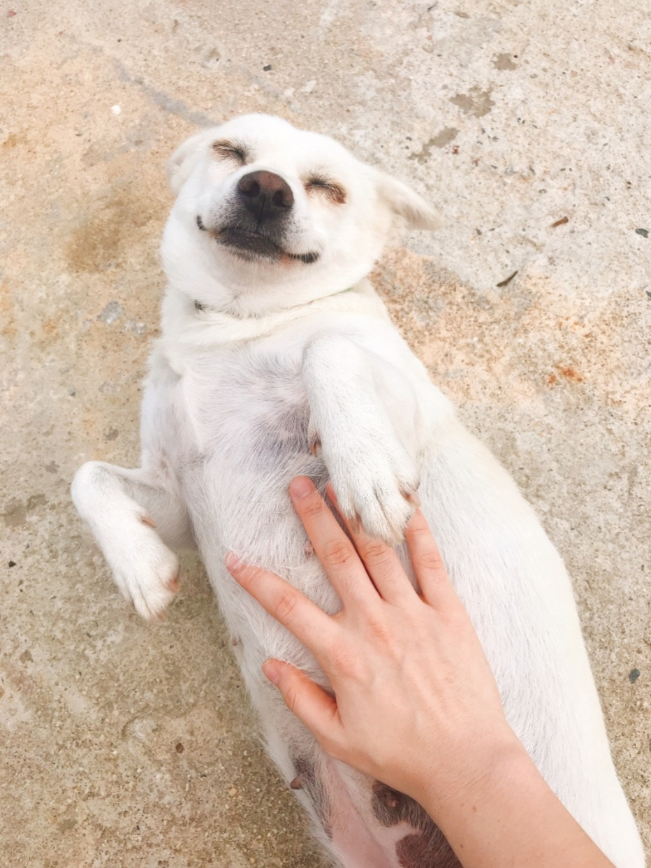 녀석의 배를 만지고 있노라면 편안한 듯 예삐가 스르르 눈을 감고 웃는데, 고개를 들면 눈앞이 온통 바다요, 손은 강아지의 부드러운 촉감으로 가득하니 천국이 따로 없다. 나의 손길에 녹아버리는 이토록 귀엽고 사랑스러운 생명체라니!
