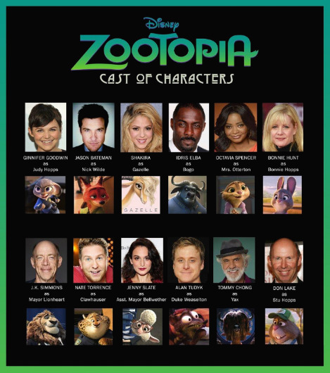 : <주토피아>는 평등과 이상 사회를 이야기한다. 그러나 캐스팅은 백인 중심이고, 주요 캐릭터 중 흑인은 두 명인데 한 명은 영화에서 주인공에게 시련을 주는 캐릭터다. 영화 속에서 자의식을 가지고 독립적인 발언과 행동을 하는 인물을 연기한 배우는 모두 백인이다.