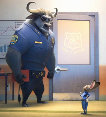: 주토피아는 강약논리가 사라진 세계지만 각 동물의 속성은 그대로 남아있다. 이런 동물의 속성은 공통 직업군에 다수의 개체로 등장하며, 주토피아는 능력이 있으면 뭐든 될 수 있다고 말하지만 종자의 한계를 긋고 차별한다.