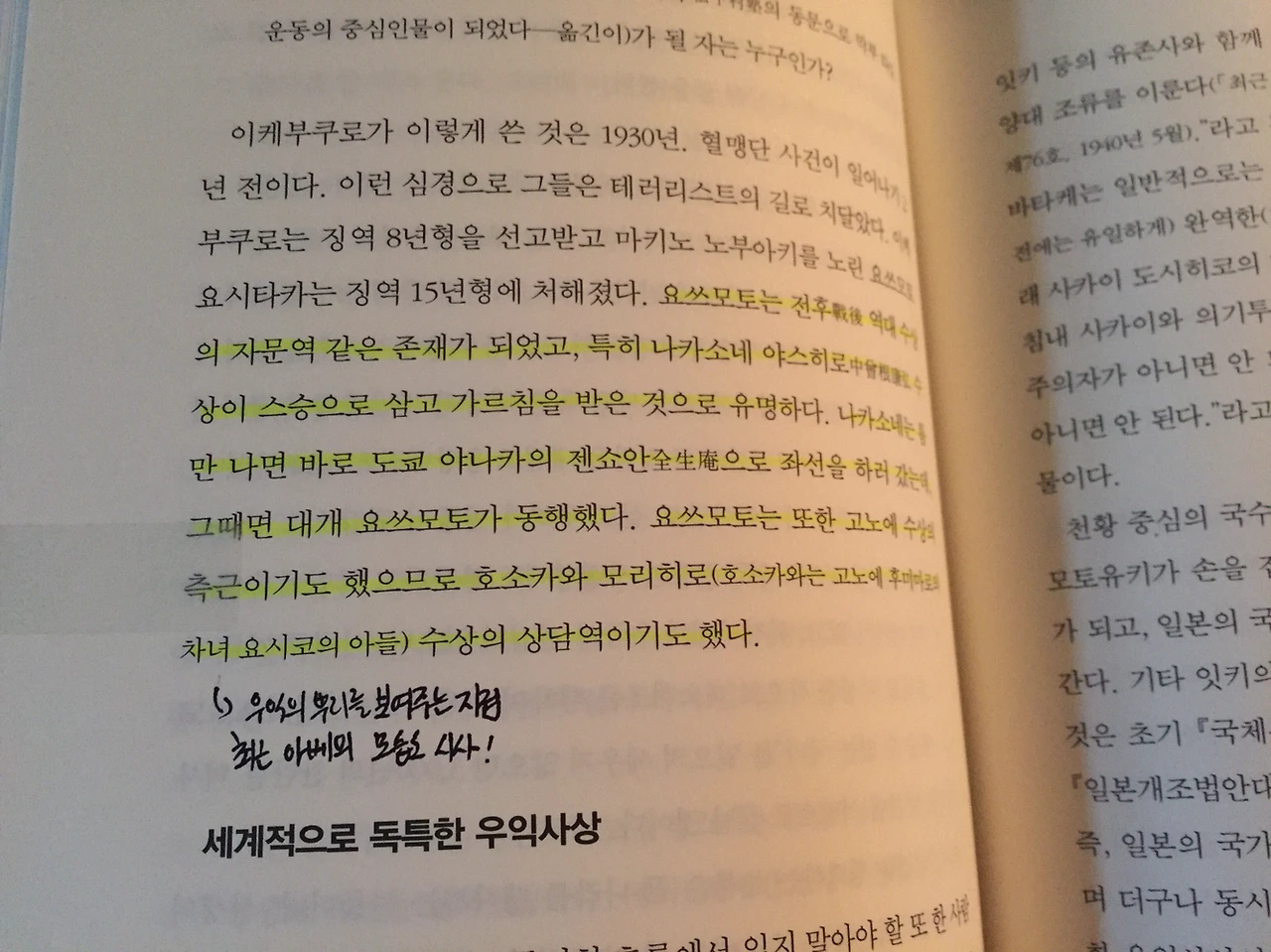 첫 글을 적어봤다. 일본 우익의 뿌리는 전쟁광으로 대표되는 군인이 아니라, 저러한 엘리트 극우(요쓰모토는 도쿄대 출신이다)에 있다는 게 타치바나 타카시 책의 요지다. 전후에도 이 흐름은 끊기지 않고 면면히 이어져 여전히 정치계 등에 만연해있다. 특히 최근 자민당 내에서 별다른 파벌 경쟁 없이 아베가 무투표 당선된 것은 흐름이 일극화됐음을 보여주는 증거기도 하다. 한국인으로서 걱정스러운 부분이다.