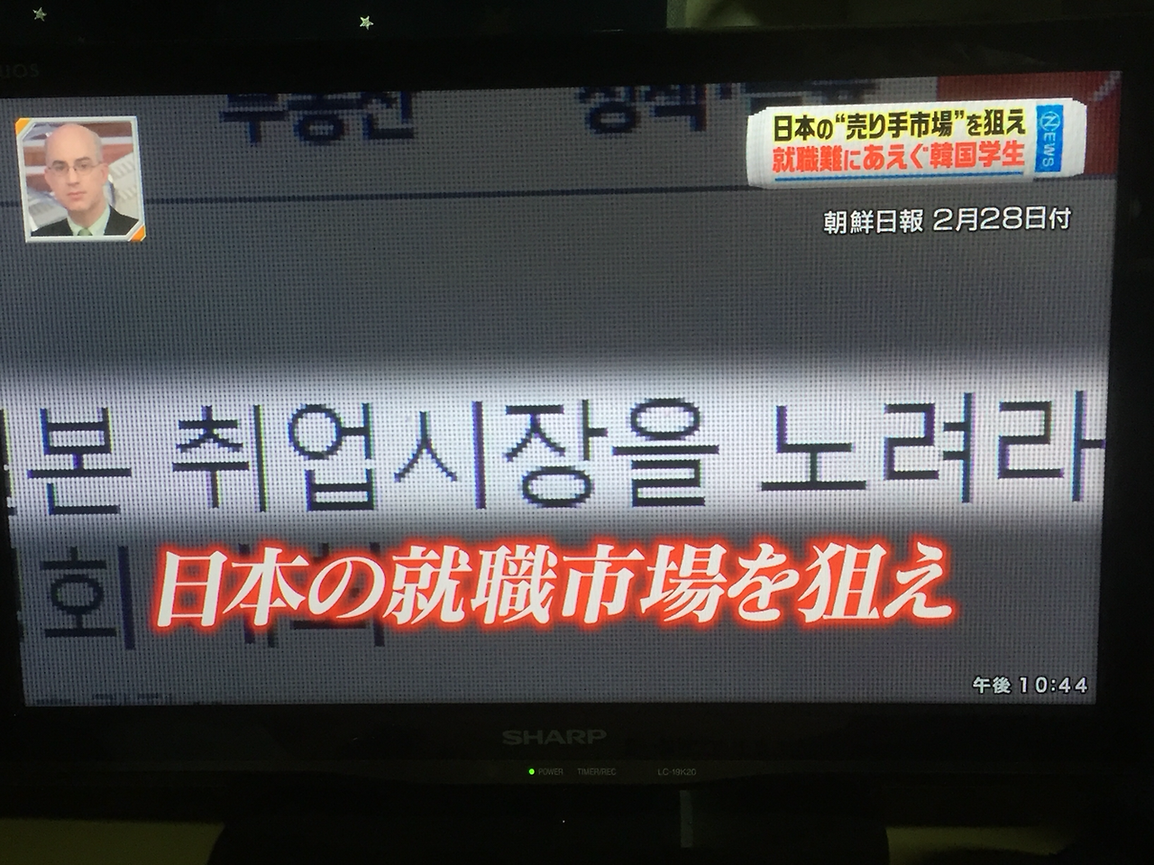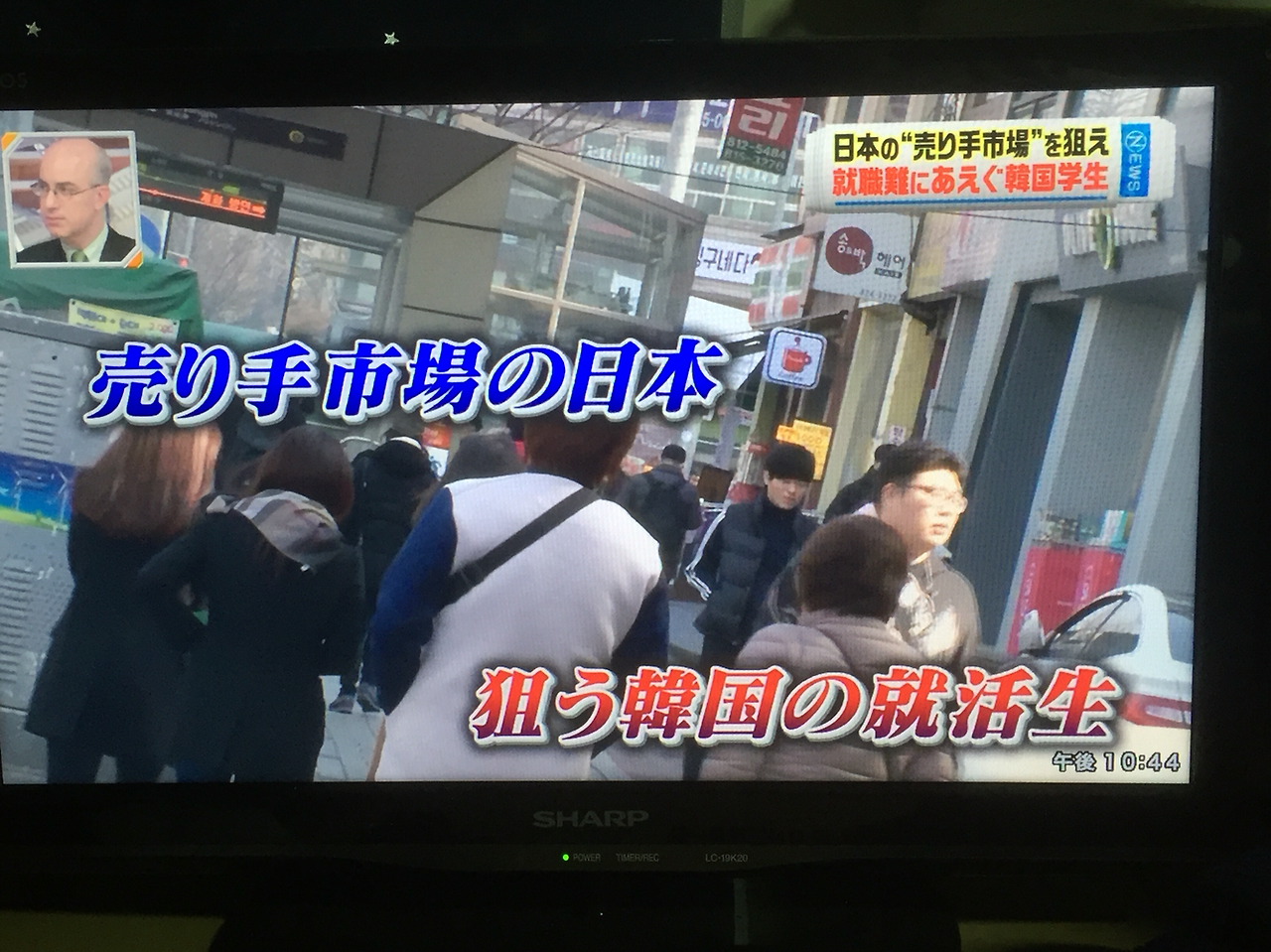 얼마전 한 방송에는 아래와 같은 보도도 나왔다. 한국에서 적극적으로 일본시장을 공략하려는 취준생이 증가하고, 일본 기업들도 적극적으로 응하겠다는 내용이다. 아래는 해당 방송 사진이다.