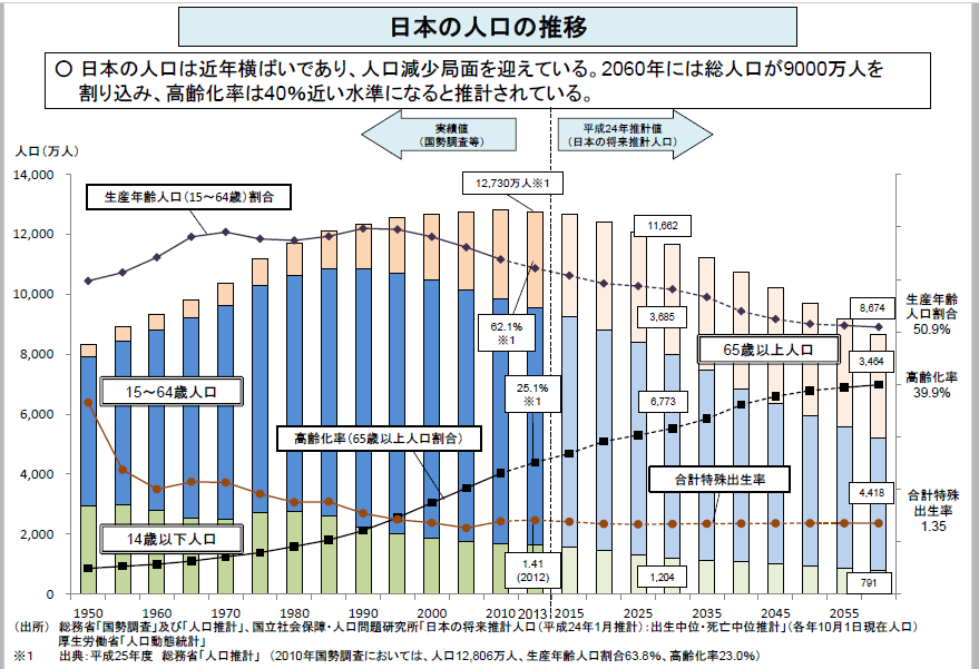 2013년 뒤는 추계치이나 계속 감소할 것으로 전망된다. 가장 활달하게 일해야 할 사람들이 점점 줄어드는 상황에 처한 것이다. 이는 일본의 베이비붐세대인 '단카이세대(덩어리세대, 団塊の世代)'가 대거 은퇴하면서 어느 정도 예상된 일이다.