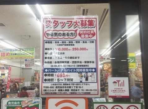 다만, 일본 시급이 모든 지역에서 균일하게 적용되는 건 아니다. 아래는 지난 9월초 가고시마현(鹿児島県)에서 찍은 사진이다.