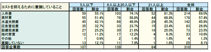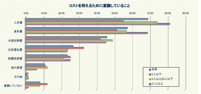 인건비 / 식재비 / 광고선전비 / 수도광열비 / 월세 / 설비투자비 / 기타 / 의식하지 않음 이라는 8항목 가운데 3개를 고르도록 했다.