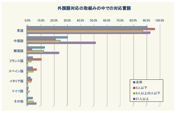 다만, 한국어는 중규모 이상 업체가 되어서야 일부 대응이 가능한데, 이 역시 기업형 음식점의 여력과 관련 있는 것으로 보인다.