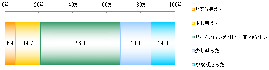'지난해에 비해 독서시간이 늘었는가'라는 질문에 줄었다고 답한(조금+상당히) 사람이 32.1%였던 데 반해, 늘었다고 한 사람은 21.1%에 그쳤다. 변화없다는 46.8%였다. 아래 그래프다.