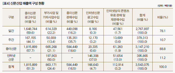 물론, 한국 신문 산업의 구조적 위기는 오늘 내일 일이 아니다. 그럼에도 제대로 된 수익원을 찾지 않는 이상, 어떤 언론은 사회봉사에 가까운 일을 해야 하고, 어떤 언론은 기업과 끈끈하게 유착하게 되는 구조는 더욱 강화될 것으로 보인다. 이는 소위 '기레기'를 양산하는 구조적 문제이기도 하다.