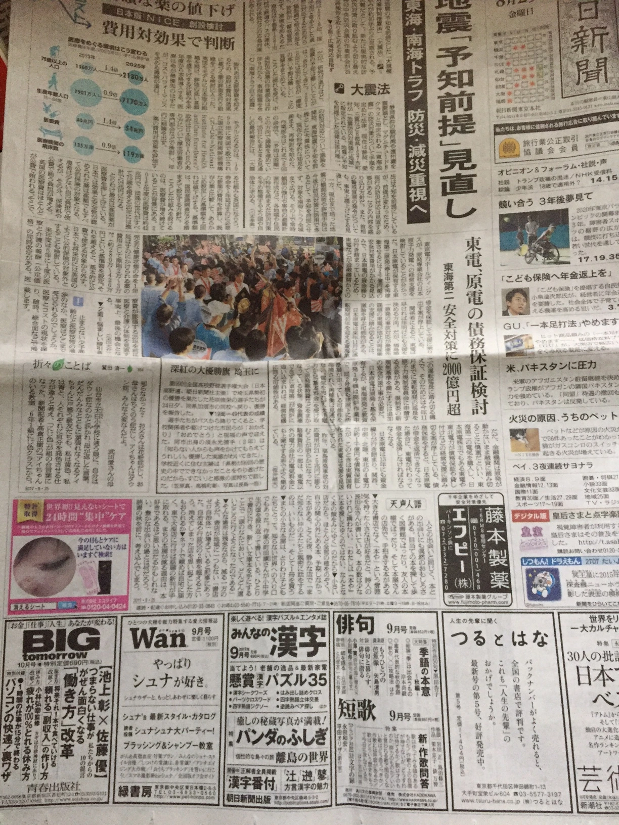 아래는 일본 아사히신문 1면이다. 책 광고가 6개 쭉 배치돼있다.