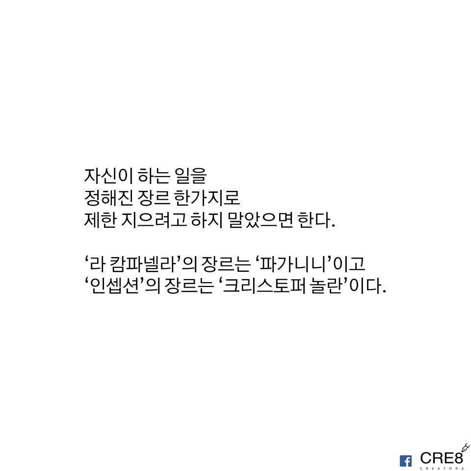 스티브잡스, 파가니니, 크리스토퍼 놀란은 스무살 나의 영웅이었다. 그들을 보며 '장르가 된 사람들'이라고 생각했다. 그땐 그게 무슨 의미인지도 모르면서 그냥 멋있어서 그렇게 정했었다.