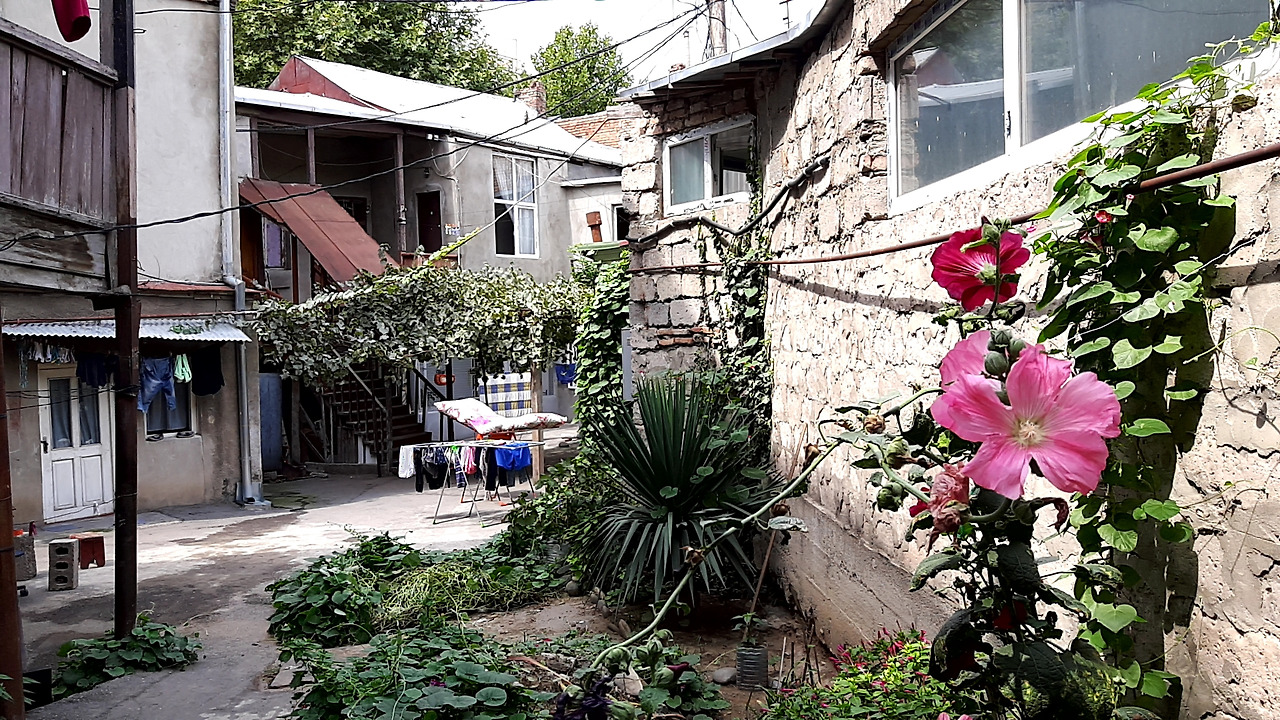 접시꽃이 피고 여느집이나 있는 포도넝쿨에는 오면 가면 익어가는 포도를 따먹을 수 있는 와인의 나라, 조지아