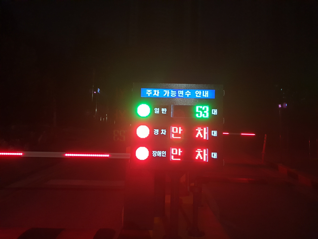 일반 차는 53대나 댈 수 있다고 빨간불이 켜져 있다..