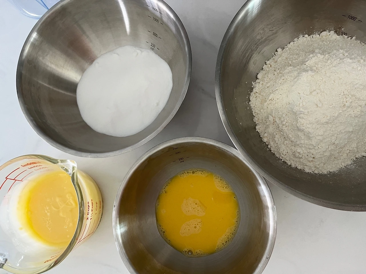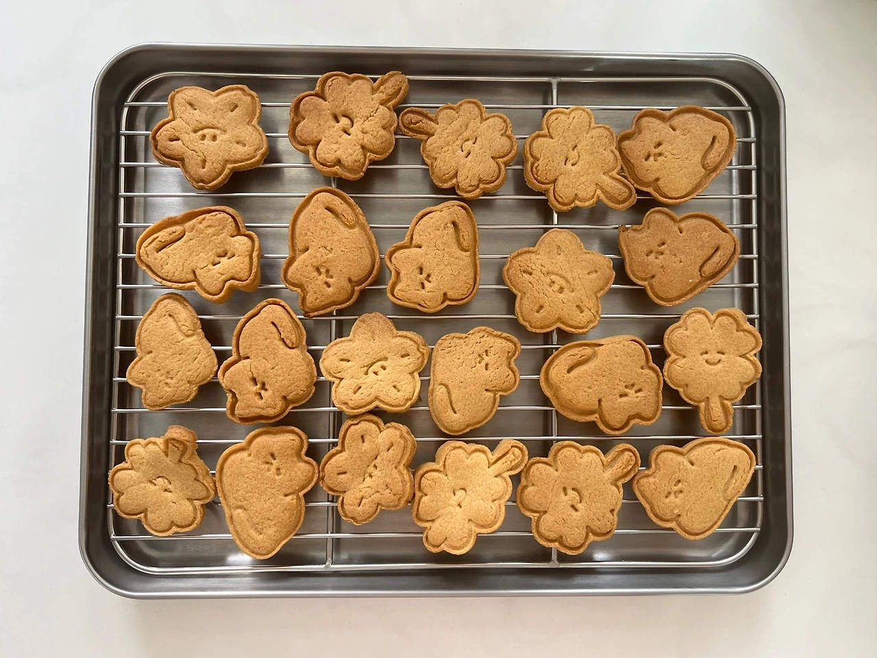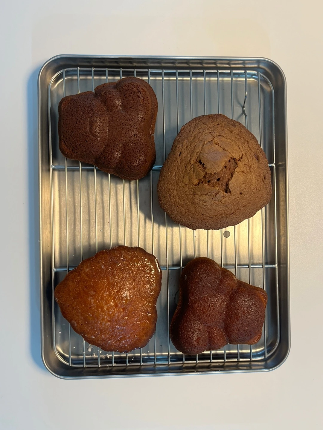 무염버터 50g인데 49g 들어갔다면 어떻게든 1g만 더 녹여서 추가하고, 박력분을 포함한 가루류들도 1g의 오차도 없게 정량대로 만들었다. 동일한 재료와 레시피로 똑같이 구웠는데 결과물은 달랐다. 처참할 정도는 아니었지만 한눈에 봐도 결과물이 달랐다. 웃음이 났다.