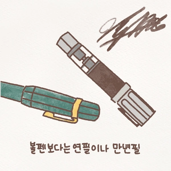 좋은 어플이 아무리 많아도, 굳이 종이에 사각사각. 볼펜보다는 연필이나 만년필. 일상을 그림일기로 남기고, 티백보다는 직접 우려야 하는 차를 마시고, 강아지를 키우고, 자꾸만 식물을 사들이며 각각의 주기에 맞춰 물을 준다. 오일이며 심지며 따로 구매해 신경 써서 관리해야 하는 오일램프를 쓰고, 아파트를 싫어해 옥상이 있는 주택으로 이사 왔다. 분리수거부터 시작해 음식물 쓰레기, 수도나 전기, 보일러, 옥상과 마당 관리 등 해야 할 게 많지만 귀찮다고 느껴 본 적은 없다. 오히려 쉬는 시간이랄까, 마음이 정리돼 좋다.