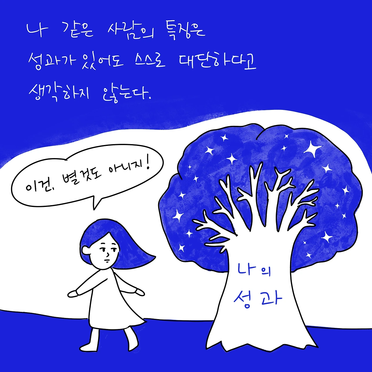 진짜 대단한 것인대도 불구하고 스스로에게 칭찬할 줄 모른다.