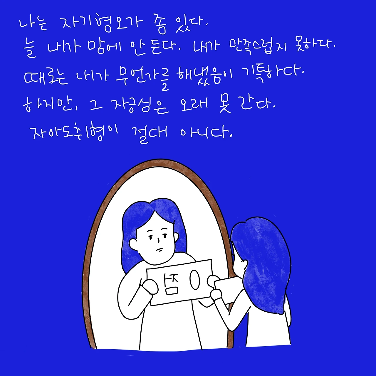 나를 더 미워하지 않아도 될 만큼, 이미 잘 하고 있다.
