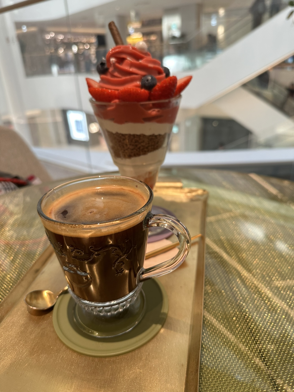좀 멀리라도 지하철 타고 사람 많은 곳으로 찾아갔다. 맛있는 카다이프 새우튀김, 제철 딸기 셔벗 파르페, 바나나우유 아이스크림에 깔끔한 아메리카노 한 잔.