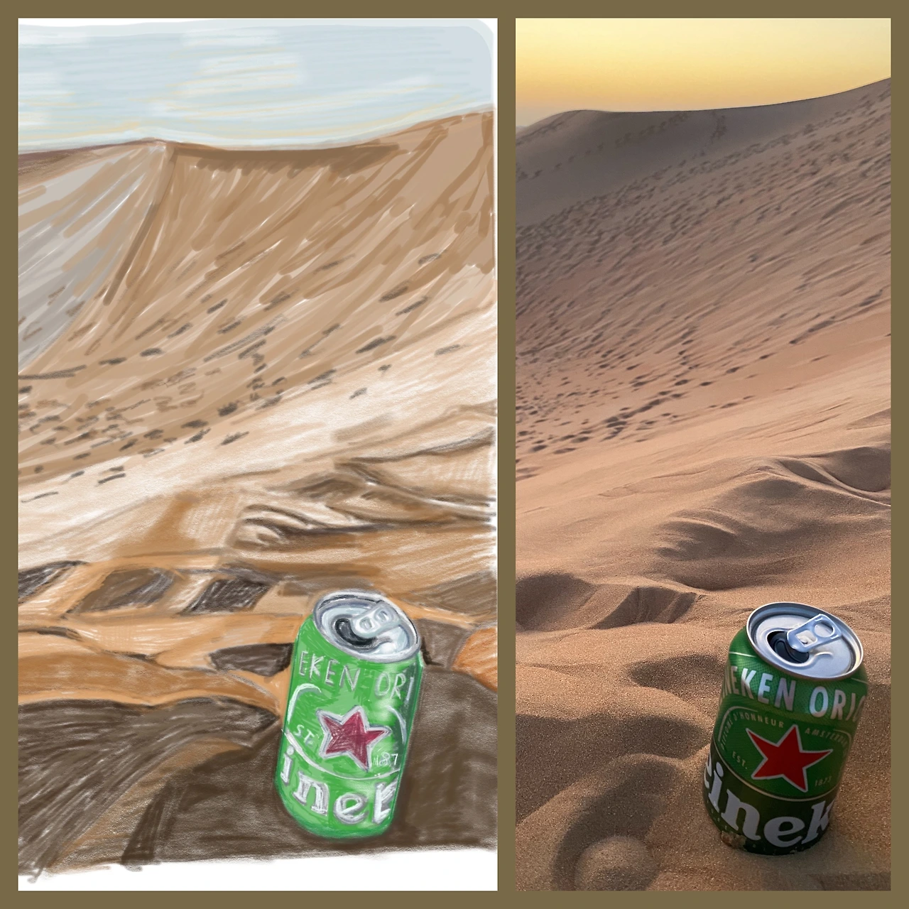 낙타들도 종종 지나가고, 사막 모래 위로 해가 진다. 누런 해은 그 붉은빛이 누런 모래 언덕과 하나가 된다.