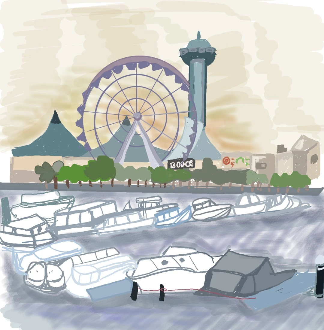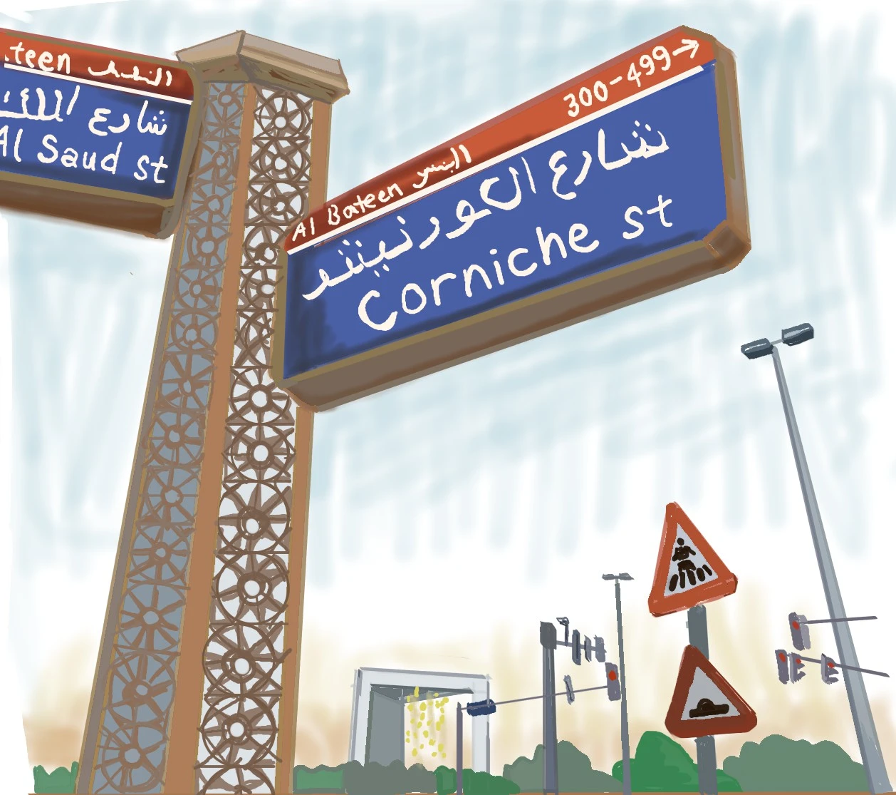 다시 완성된 그림. 사막에 지은 도시이지만, 해변을 끼고 있는 아부다비. 12, 1월엔 낮엔 더운 여름이지만, 저녁 무렵부터는 선선한 바람이 자전거나 산책하기 좋은 곳이 된다.