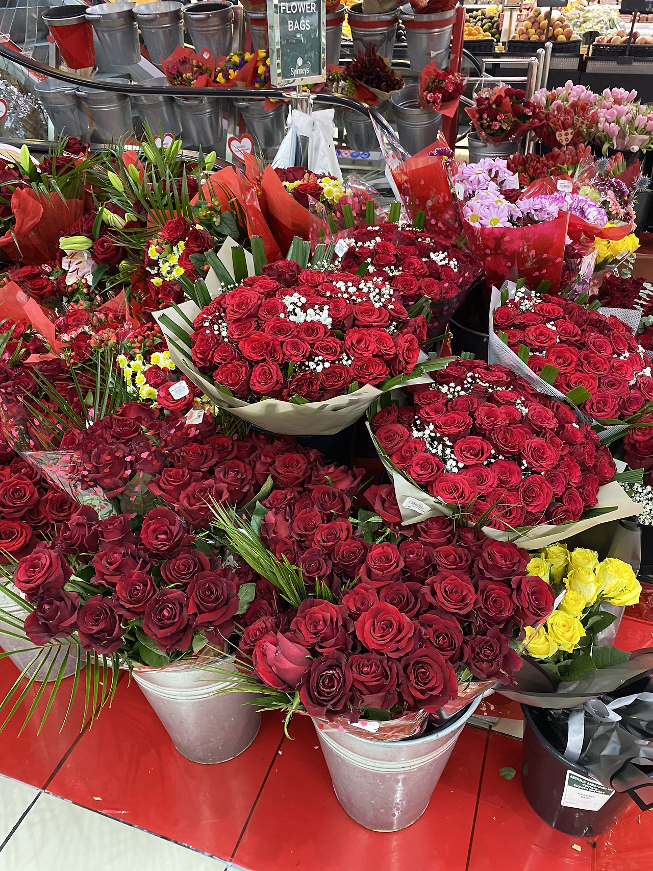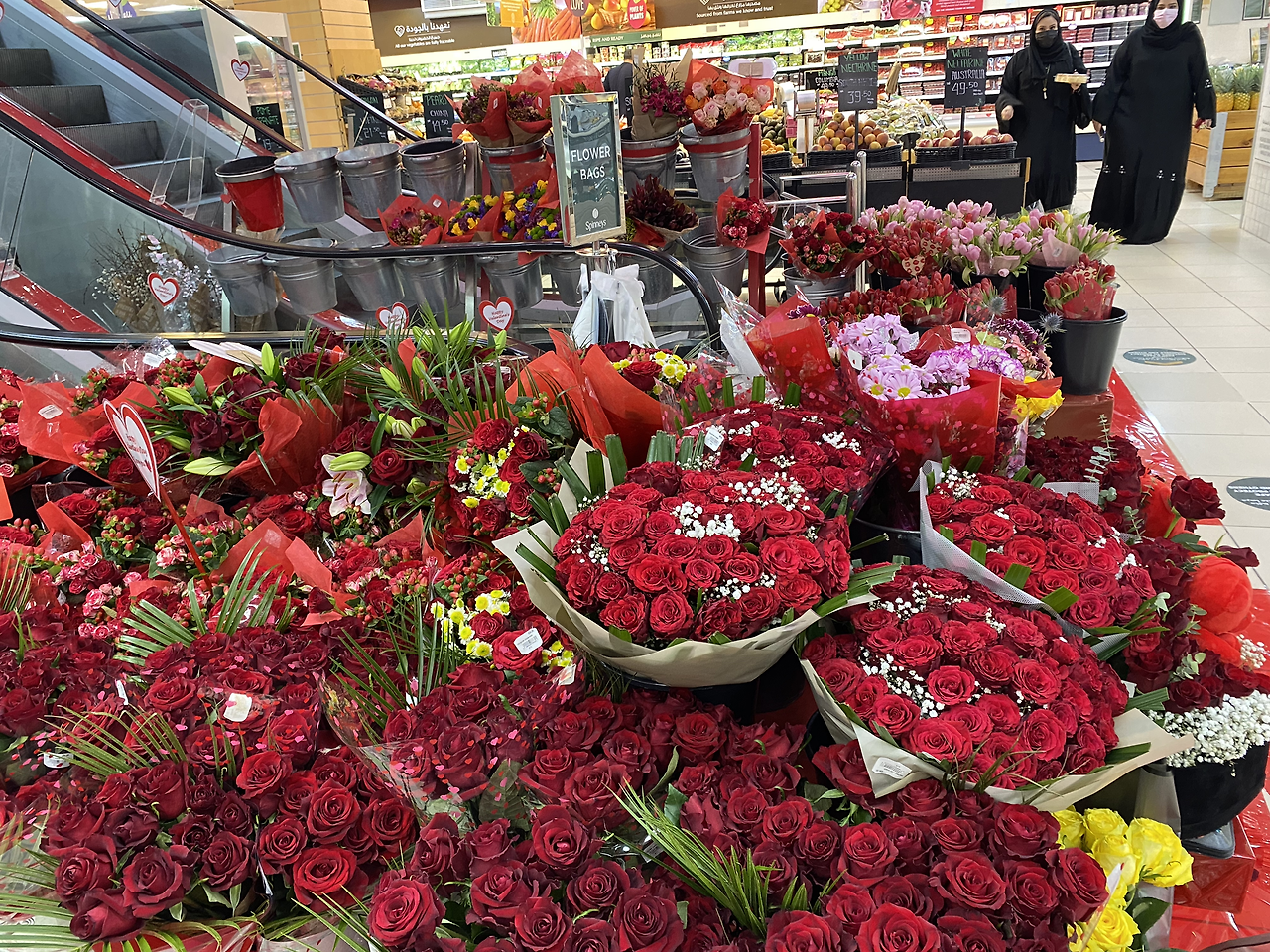 마트에 자리 잡은 화려한 장미들은 보니 기분이 좋아진다.