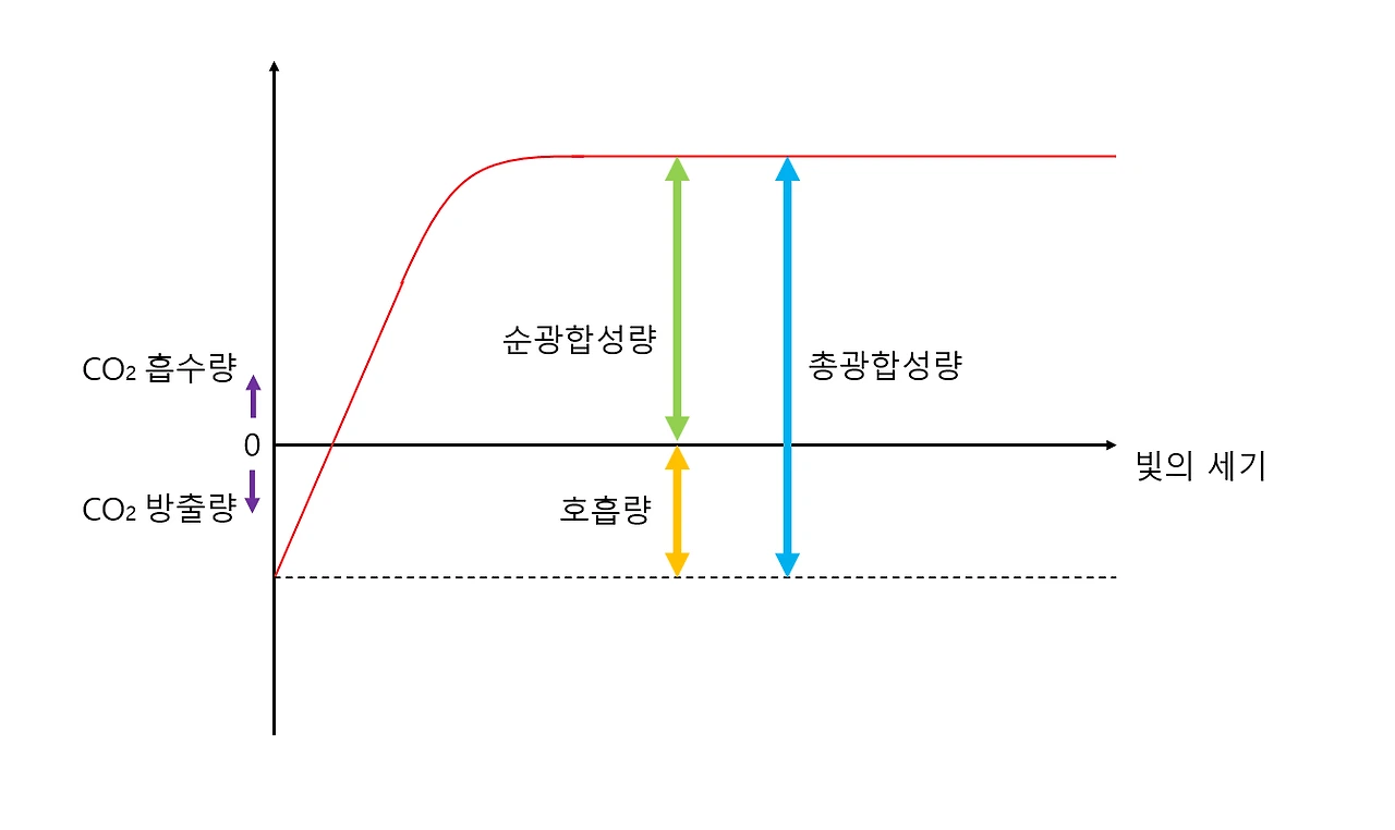 반면, 광합성을 살펴보자. 광합성은 식물의 엽록체라는 세포 소기관에서 일어난다. 이산화탄소를 흡수하여 빛에너지를 받아 포도당과 산소를 만들어낸다. 이때 조건은 빛을 받아야 한다는 점이다. 빛이 있어야만 광합성을 할 수 있다.