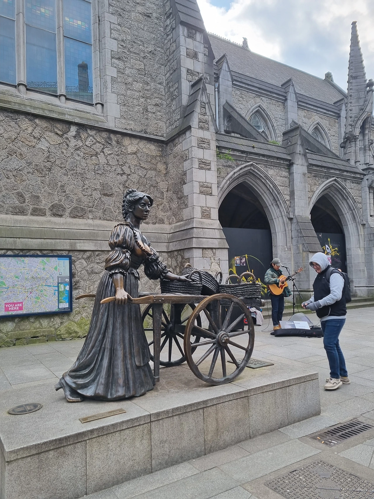 이때를 기억하기 위한 동상들이 더블린 곳곳에 있다. 첫 번째는 몰리 말론 동상 (Molly Malone Statue)이다. 여자가 가슴이 많이 파진 드레스를 입고 물고기가 실린 카트를 끌고 있는 동상이다. 이 여자에 대해 전해져 내려오는 이야기는 다음과 같다. 아이를 키우고 있는 여자인데, 일자리도 없고 먹을 것도 없었다. 그래서 항구 근처에서 가슴이 드러나는 드레스를 입고 영국군과 잠자리를 가진 후 그 대가로 물고기를 얻었다고 한다. 아이에게 먹일 음식을 구하기 위해서 자신의 몸을 영국군에게 희생한 안타까움이 담긴 이야기이다. 이 동상이 관광 명소로 유명해서 사람들이 와서 사진을 찍는데, 이 동상의 가슴을 만지면 복이 온다는 미신이 있나 보다. 사람들이 가슴에 손을 얹은 채로 사진을 하도 많이 찍어서 그 부분만 반질반질하다. 몰리 말론 동상에 관한 이야기가 실화인지 아닌지는 모르겠으나 비록 동상일지라도 자신의 몸을 어쩔 수 없이 내어준 안타까운 이야기가 담겨 있는데 여전히 다른 사람이 만지고 있는 것을 보면 마음이 그리 썩 유쾌하진 않다. 또 다른 하나는 대기근 참상 동상(World Poverty Stone)이다. 피골이 상접한 사람이 힘없이 서있는 동상이다. 죽어가는 자식을 들쳐업고 서 있는 동상도 있다. 개마저 갈비뼈가 다 드러나 있는 것을 볼 수 있다. 이런 동상을 통해 그 당시의 상황이 얼마나 참혹했는지를 짐작할 수 있다. 더블린 동상 보러 가기