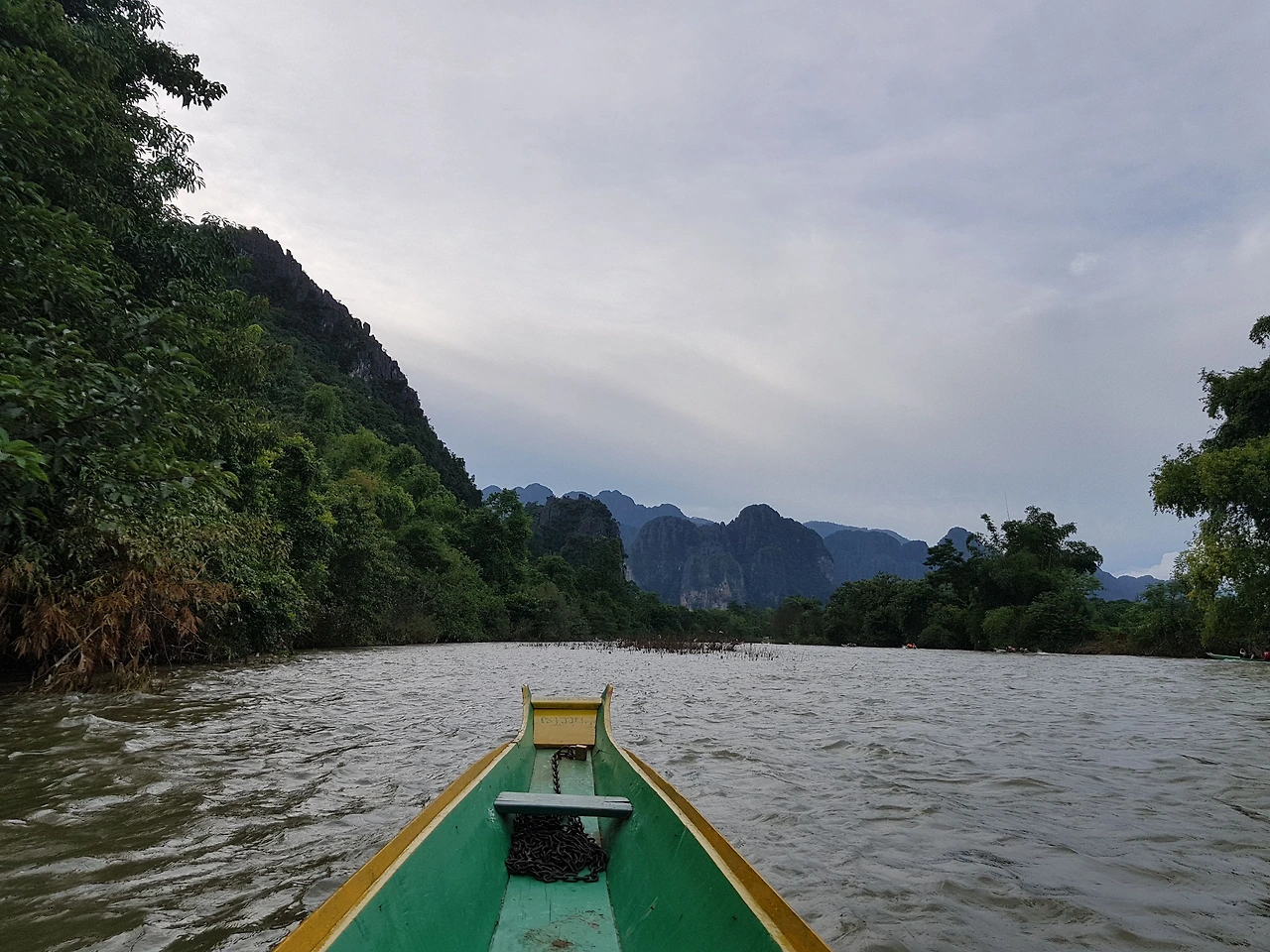 라오스 여행 테마는 액티비티였다. 정말 많은 액티비티를 즐겼다. 첫날은 수도인 루아프라방에서 롱보트를 탔다. 강에서 타는 기다란 보트였는데, 정말 빠른 속도로 달렸다. 보트 빠르기 때문에 물줄기가 흩어졌다. 그 흩어진 물보라를 맞으며, 바람을 맞으며 신다게 달렸다. 스트레스가 풀리는 속도였다.