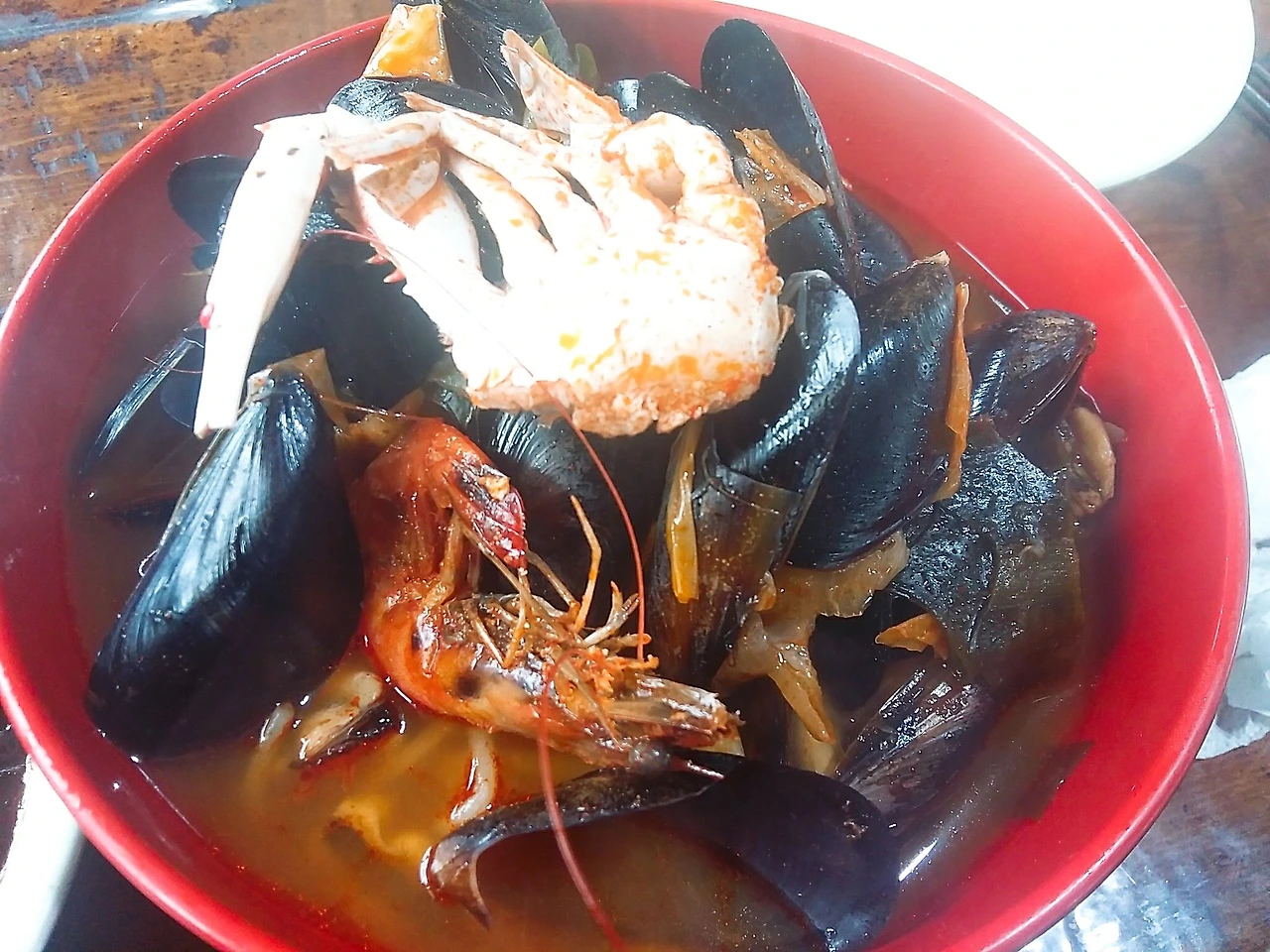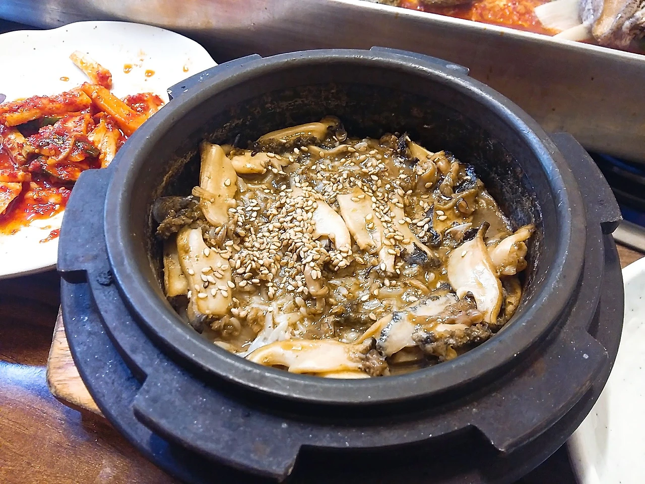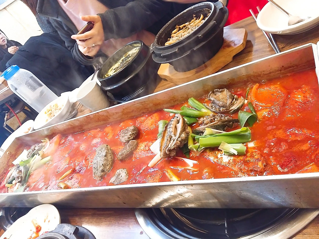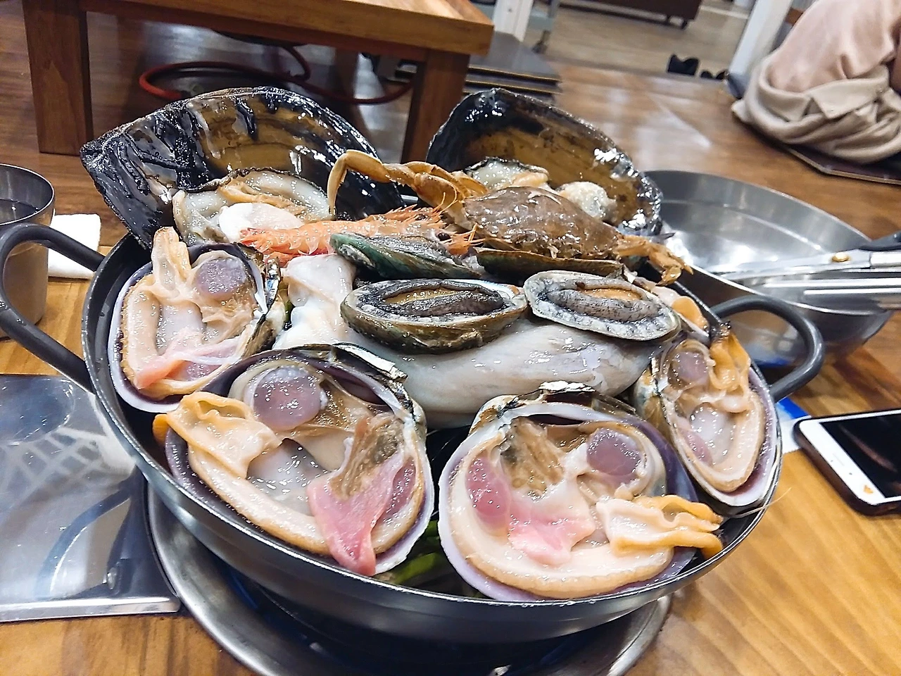 이 날 저녁은 시장에서 귤과 떡만 먹으려고 했으나 먹고 제주도 길을 걷기만 해서 매우 허기졌다. 그래서 시장 근처에 있는 해물탕집에 갔다. 사실 해산물을 좋아해서 회도 잘 먹고 생선도 잘 먹고 매운탕도 다 잘 먹지만 이상하게 해물탕은 별로 좋아하지 않는다. 국물에서 각종 해물맛이 나서 오히려 시원하지 않은 맛이 나기 때문이다. 그래서 나는 생선구이를 더 많이 먹었다. 이건 어디까지나 나의 의견일 뿐 가족들은 해물탕도 야무지게 드셨다.