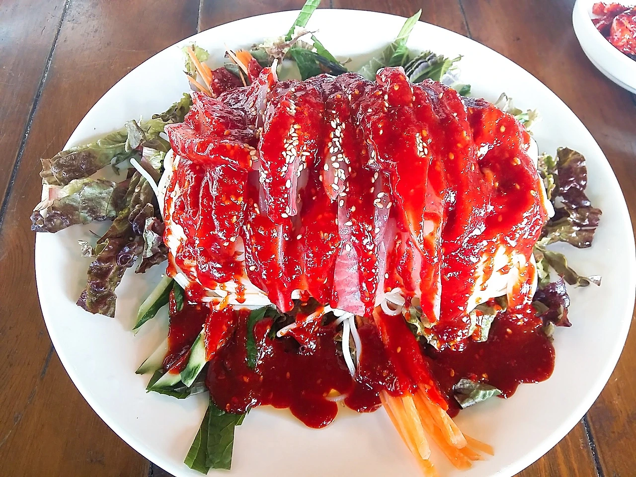 그다음으로, 고3 수능이 끝나고 가족과 제주도에 갔다. 이때의 여행 테마는 식도락! 관광 명소를 찾아가지 않고 오로지 맛집을 찾아다녔다. 처음으로 먹은 음식은 우도의 방어회와 회국수이다. 방어회는 한 점만 넣어도 입안이 가득 찰 정도로 두툼했다. 회국수는 처음에는 낯설었지만 정말 최고로 맛있었다. 내 인생 맛집 중 하나로 등극되었다.