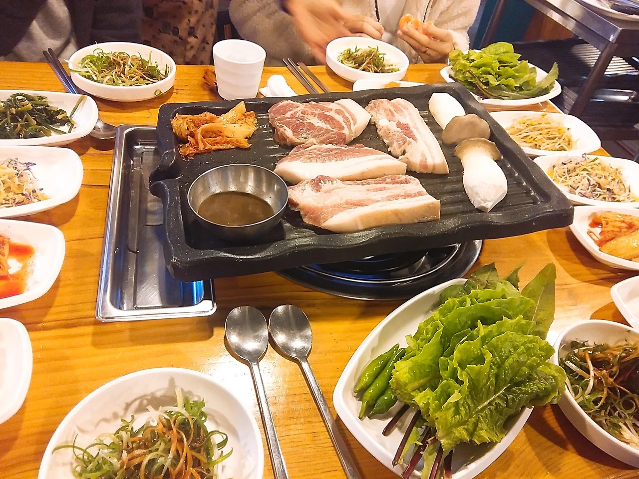 마라도에서의 식사를 마치고 다시 제주도 본섬으로 갔다. 저녁 식사는 바로 제주 흑.돼.지. 흑돼지 삼겹살을 3인분 주문했다. 4인이었지만 하루종일 먹은 탓에 소화될 틈이 없어서 먼저 3인분을 주문하고 추가로 주문하기로 했다. 아니나 다를까 역시 부족했다. 그래서 2인분을 더 주문하기로 했다. 그런데 웃겼던 것이 분명 2인분을 주문했는데 3인분 같은 2인분이 나왔다. 사장님께 2인분 양이 맞냐고 여쭤볼 정도였다. 2인분 양이 맞다고 하셨고, 이 2인분도 깔끔하게 다 먹었다. 과연 사장님은 처음 3인분을 적게 주신 걸까? 나중 2인분을 많이 주신 걸까? 어찌 되었든 아주 잘 먹었습니다.