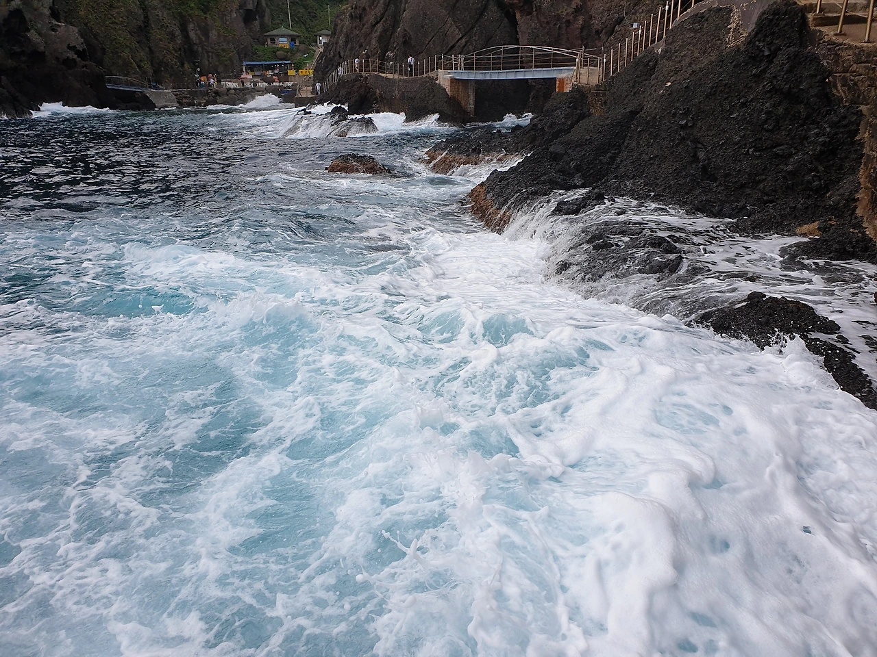 저녁에는 저동항으로 이동했다. 저동항에 도착해서 등대를 보고 회를 사 먹기로 했다. 수산물 시장에서 우럭과 오징어를 골라서 바로 회 떠서 먹었다. 역시 최고였다. 남은 오징어회는 포장해서 숙소에 가져갔다. 숙소로 돌아가는 길에 컵라면을 하나씩 샀다. 컵라면을 뜯고 그 위에 오징어 회를 올린 후 뜨거운 물을 부어 컵라면을 만들어 먹으면 정말 최고로 맛있다. 그렇게 야식까지 야무지게 먹었다. 다음날 아침 촛대암 풍경의 일출을 봤다. 새해에도 일출을 보러 가지 않는 사람인데, 이날은 이상하게 눈이 떠졌다. 이후 아침으로 또 홍따밥을 먹었다. 그리고 행님해안산책로를 걸었다. 물이 정말 맑았다. 물감을 풀어놓은 듯한 색이었다. 파도가 부서지면서 생기는 물보라도 정말 시원했다. 해안길을 다 걷고 '이레'카페에 들어갔다. 밀크티를 먹었는데,,,! 지금까지 먹어본 밀크티 중에 가장 맛있었다. 내가 울릉도에 와서 이렇게 맛있는 밀크티를 마시게 될 줄을 상상도 못 했다.