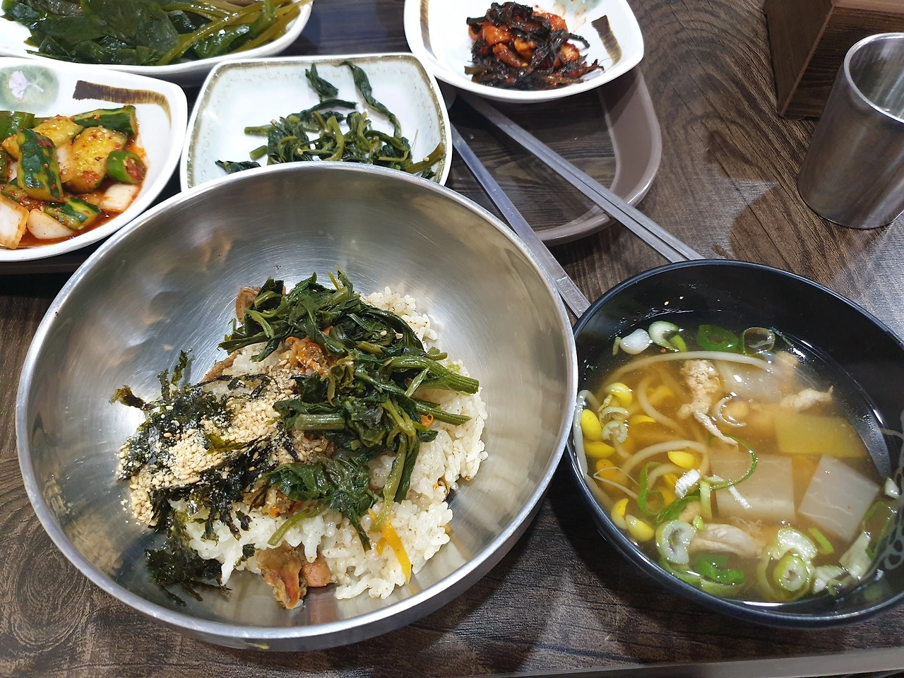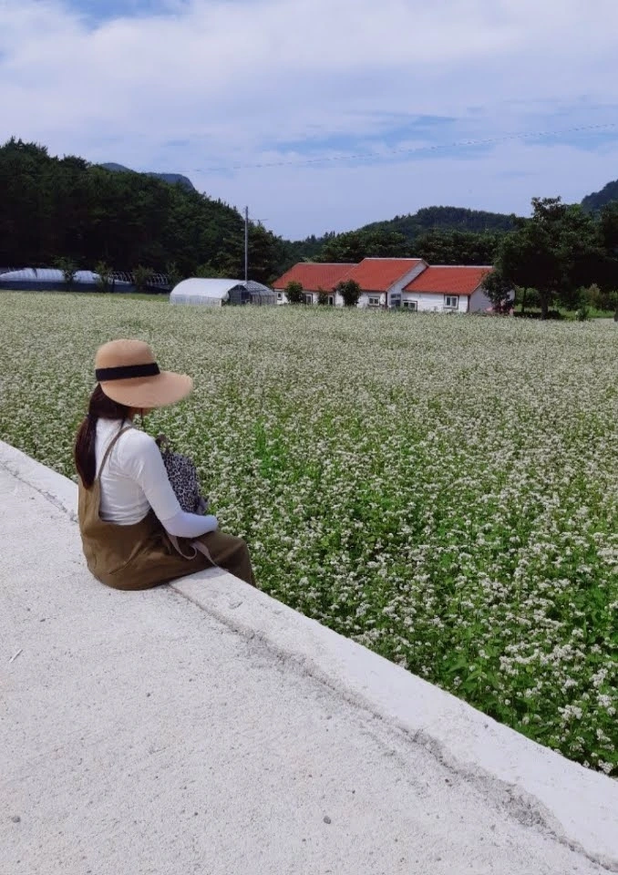 둘째 날은 성인봉에 갔다. 성인봉 등산길까지 가는 길도 참 험난했다. 울릉도는 화산섬이다. 그 화산섬의 꼭대기 부분만 바닷물 위에 있는 구조이다. 그래서 평지가 많이 없다. 택시를 타고 성인봉 등산길 입구까지 갔는데 계속 험난한 오르막길이었다. 아마 울릉도 현지분들만 이곳에서 운전할 수 있을 것 같다. 등산길 입구부터 성인봉까지는 그리 많은 시간이 걸리지 않는다. 그런데 등산을 안 한 지 오래되어서 꽤나 힘들었다. 올라가는 길에 봉래폭포 사진도 찍고, 성인봉도 찍고 반대편으로 하산했다. 그쪽에 나리분지가 있기 때문이다. 나리분지는 평지를 뜻한다. 그 울릉도에 몇 없는 평지 말이다. 나리분지에 메밀꽃밭이 있었다. 메밀꽃이 이렇게 예쁜지 몰랐다. 드라마 '도깨비' 덕분에 그 꽃말을 알고 있었다. '인연'. 하얀 메밀꽃이 같은 높이로 있어서 마치 눈이 쌓여있는 것 같았다. 한참을 걷고 근처에 있는 식당에 갔다. 이곳은 산채비빔밥을 파는 곳이었다. 왜 등산한 후의 산채 비빔밥은 더 맛있을까? 나물 향이 더 향긋하게 느껴지고 더 맛있었다.