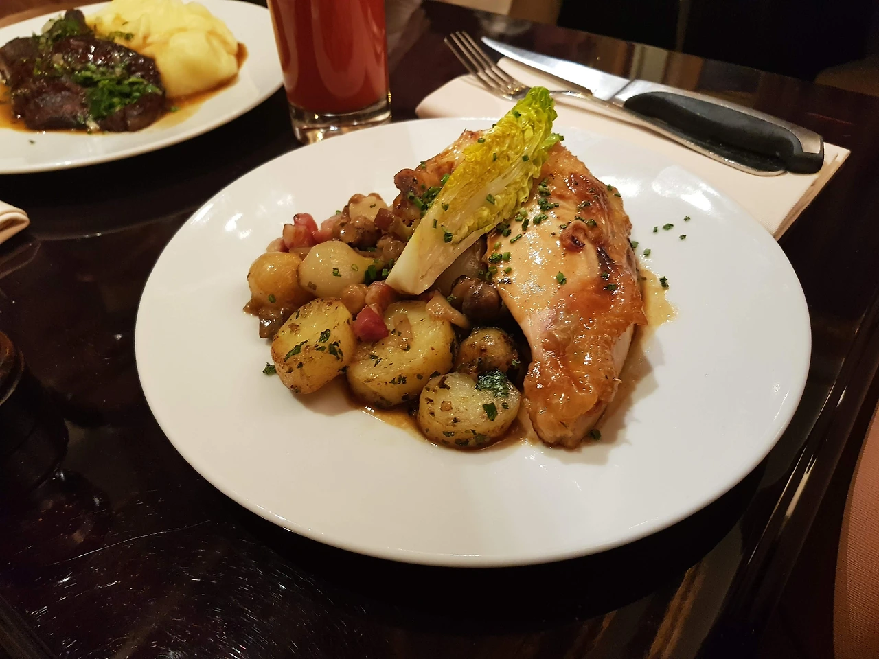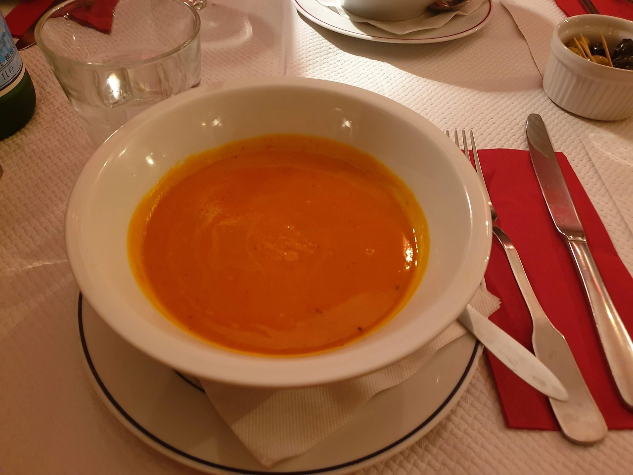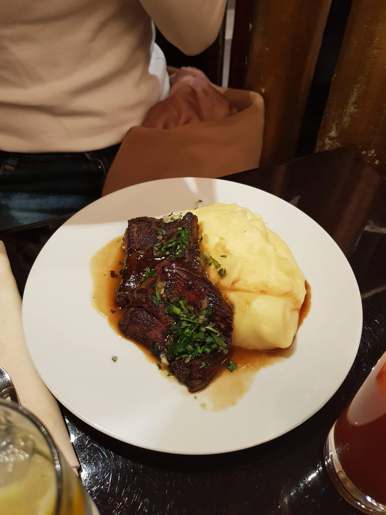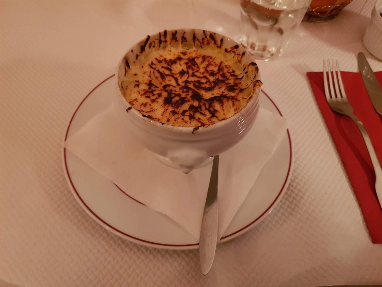 아침도 거르고 10시부터 베르사유 궁전을 구경했었다. 그 거대한 베르사유 궁전과 정원, 트리아농까지 다 보니 오후 4시가 되었다. 자연스럽게 점심도 건너뛰고 바로 저녁을 먹으러 갔다. 코스 요리처럼 스타터, 메인요리, 디저트 순서대로 모두 주문했다. 스타터는 단호박 수프, 메인요리는 스테이크, 디저트는 크림브륄레. 친구는 스타터로 양파 수프를 먹었다. 이름이 되게 생소해서 맛있을지 의문이었는데 한 입 얻어먹었더니 단호박 수프보다 더 맛있었다. 스테이크는 고기라고 생각 들지 않을 만큼 부드러웠다. 디저트 크림브륄레는 디저트 스푼으로 굳은 설탕을 탁탁 깨고 안에 있는 크림을 듬뿍 퍼서 한 입 가득 먹었다. 무엇하나 흠잡을 것 없는 저녁 식사였다.