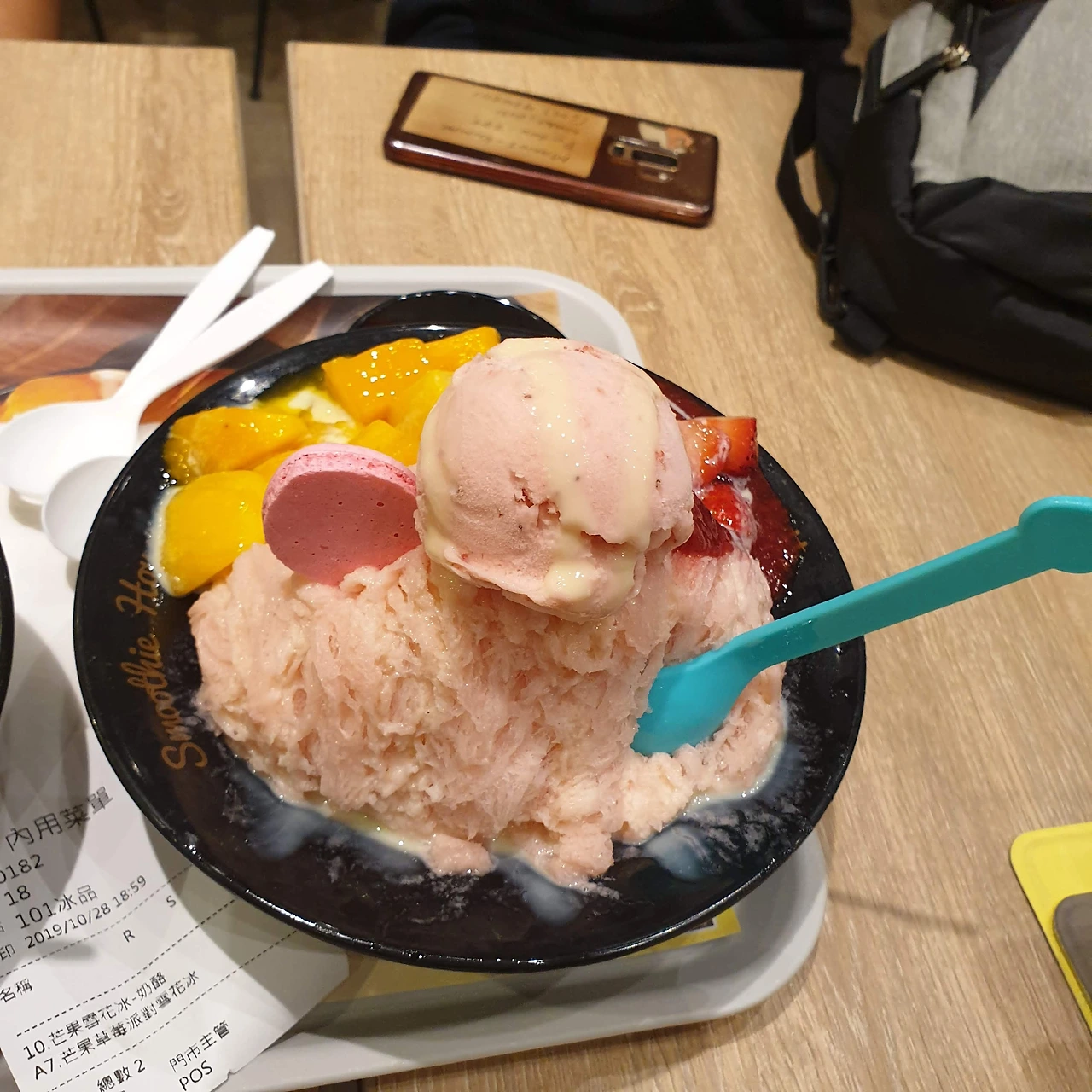 이틀째 아침, 대만 사범대학을 잠깐 견학했다. 이곳의 대학생 라이프를 살짝 봤다. 학교 안에 학생들보다 자전거가 더 많은 것 같다. 학교 안에 아주 작은 박물관처럼 실험 기구들과 설명문을 적어 놓은 곳이 있었다. 나름 진지하게 보고 나왔다. 이후 타이베이 101에 있는 딘타이펑 가게에 갔다. 즉, 점심은 딤섬이다. 친구들끼리 서로 먹고 싶은 딤섬을 고르고 함께 나눠 먹을 딤섬도 고르며 넉넉히 주문했다. 하지만 전혀 넉넉하지 않았다. 생각보다 딤섬을 매우 작았다. 매우 작았으나 혀는 모두 데었다. 육즙이 그렇게 많을 거라고 예상하지 못하고 맛있게 먹으려다가 도로 뱉을 뻔했다. 거의 용암같이 뜨겁다. 다들 고개를 이리저리 돌려가며 입 안에서 바람을 호호 불어가며 먹었다. 아쉬울 정도로 맛있었다. (사람도 많고 배도 고파서 사진을 안 찍고 먹었다.) 점심을 먹었으니 디저트! 디저트는 타이베이 101 지하에 있는 망고 빙수로 정했다. 유명한 건 다 먹어 봐야 직성에 풀리는 우리들이다. 사람이 4명이니 빙수는 2개를 먹기로 한다. 그래서 망고빙수와 딸기빙수를 주문했다. 역시 맛있어서 망고 빙수 하나 더 먹을까 고민했지만 2개로 만족하기로 했다.