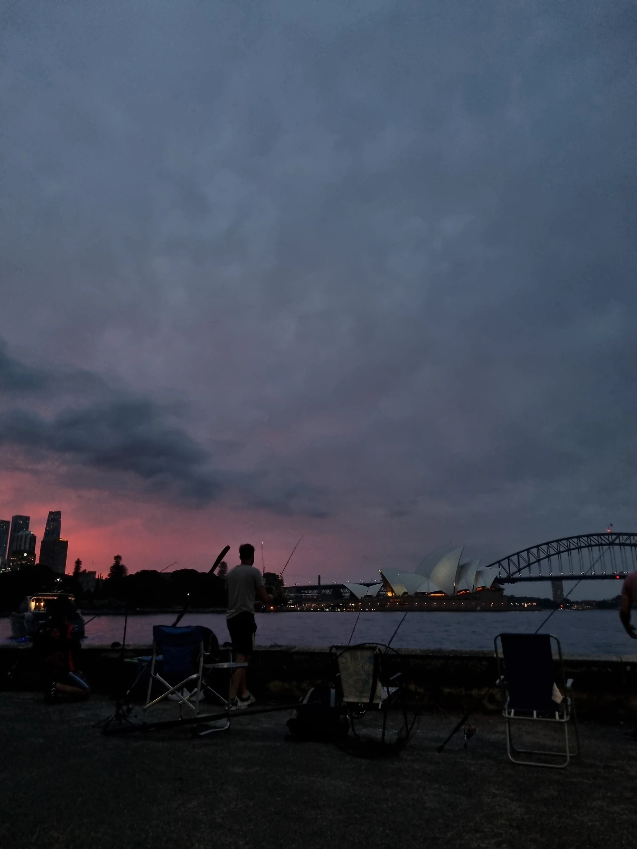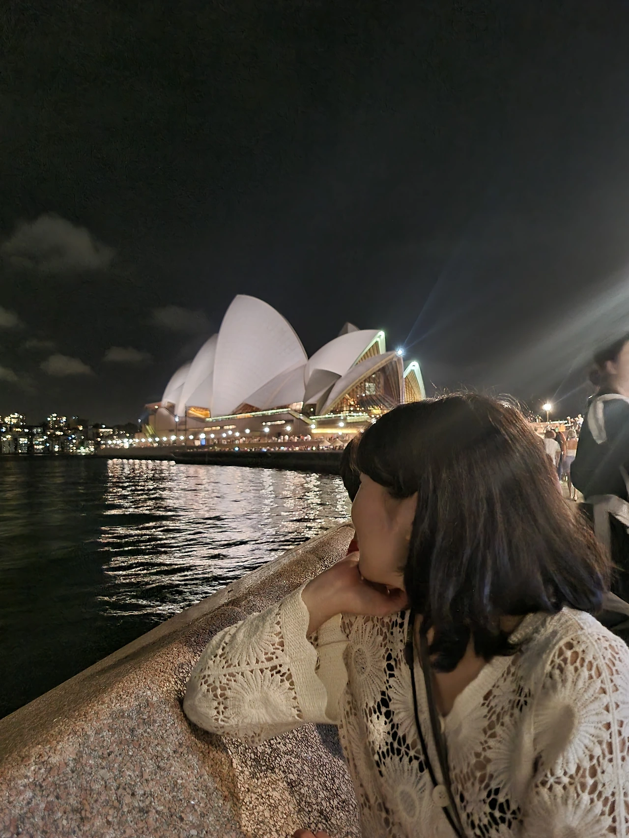원래는 투어를 마치고 바로 어제 계획한 피크닉을 하려고 했으나 힘이 모두 빠져서 숙소에서 잠시 쉬었다. 한 시간쯤 지났을까 친구와 나 둘 다 여행을 나오면 쉬기보단 돌아다니는 성격이라 이쯤 되었으면 나가자 하고 마트에 갔다. 피크닉 메뉴는 샌드위치였다. 빵과 햄, 치즈, 과일, 과자 등등을 사고 오페라 하우스가 보이는 공원으로 이동했다. 친구가 돗자리도 가지고 와서 잔디에 앉아서 피크닉을 할 수 있었다. 오페라 하우스 풍경의 피크닉이라니. 우리 바로 앞에서는 오페라 하우스를 풍경으로 낚시를 하고 있었다. 월척을 낚으셨을 땐 주변에 있는 모두가 환호해 줬다. 나름 재미있는 피크닉을 하고 걸어서 숙소에 돌아갔다. 그런데 영화제를 하고 있는 걸 발견했다. 오페라하우스가 있는 바다에 스크린을 띄워서 영화를 상영하고 있었다. 야외 상영에 잠시 우리도 계단에 걸터앉아서 잠시 봤다. 이 모든 상황이 영화 같았다. (사막 투어보다 재미있었던 것 같다. 하하)