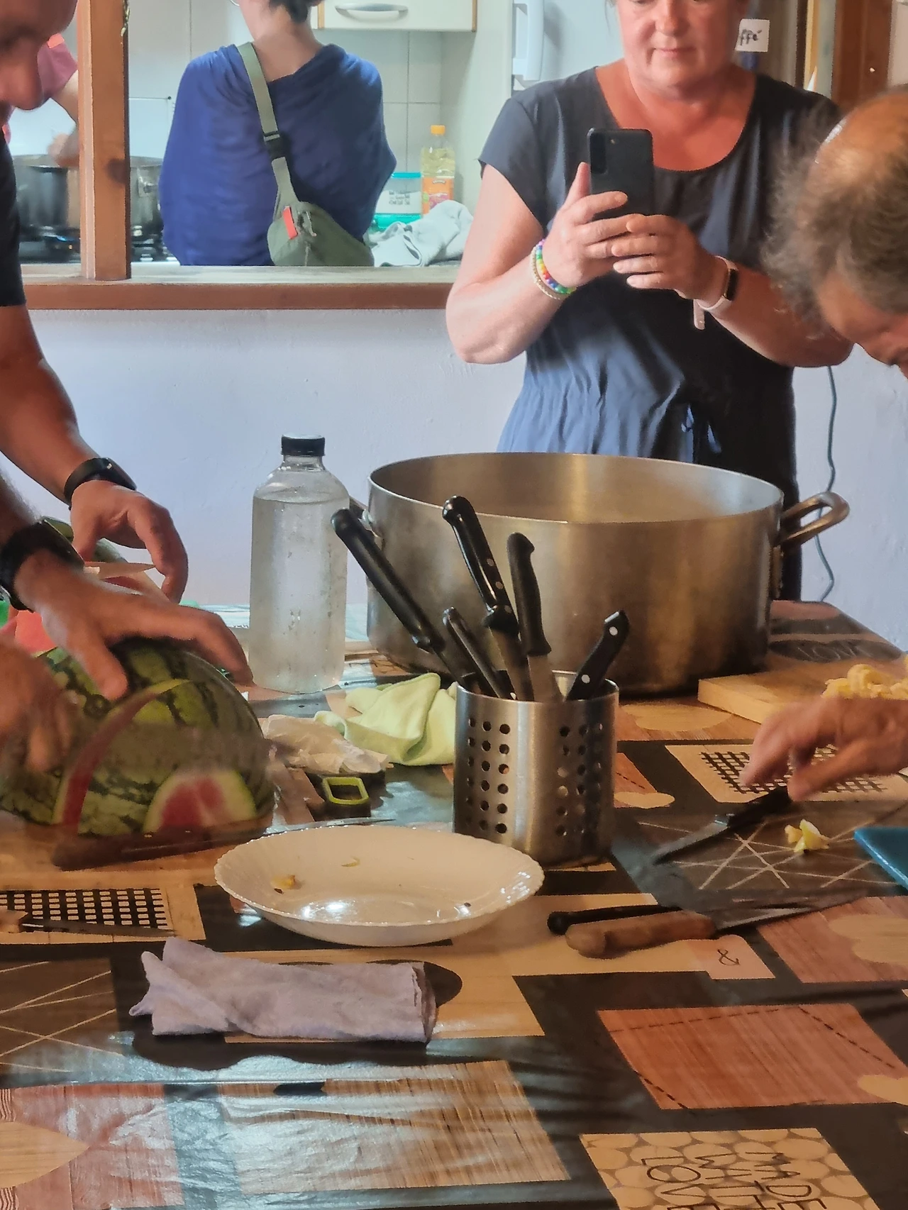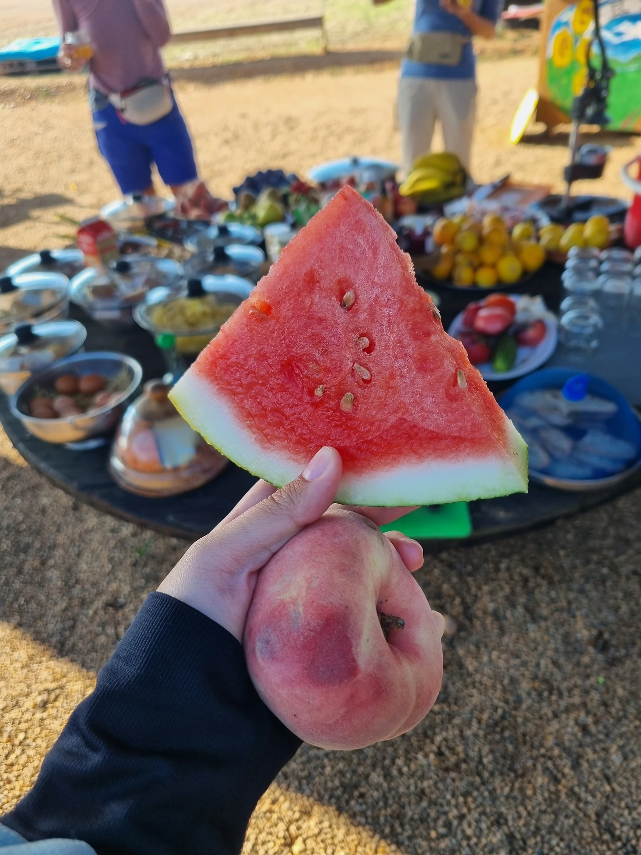 잠에서 깨니 빨래도 널어져 있고 저녁 먹을 시간이 다 되었다. 뒷마당에 있는 포도나무 밑 테이블에 사장님의 요리가 준비되어 있었다. 베지테리안 음식이었는데 정말 맛있었다. 음식을 다 먹고도 앉아서 계속 노래도 부르고 이야기도 나눴다. 그러다 한 도네이티브 bar에 대한 얘기가 나왔다. 도시 아스트로가에 들어가기 전 도네이티브 bar가 있었다. 그곳이 유독 감사하고 기억에 남았던 건 아스트로가에 들어가기 전 마을과 마을 사이가 꽤나 멀어서 힘들어 지칠 때쯤 나왔던 bar이고 그 음식의 양이 어마어마했기 때문이다. 나는 그곳에서 가지고 있던 동전을 모두 기부 박스에 넣고 수박, 납작 복숭아, 뻥튀기, 음료수, 자두, 바나나를 먹었었다. 너무 감사했던 도네이티브 bar여서 신나게 그 기억을 말했었다.