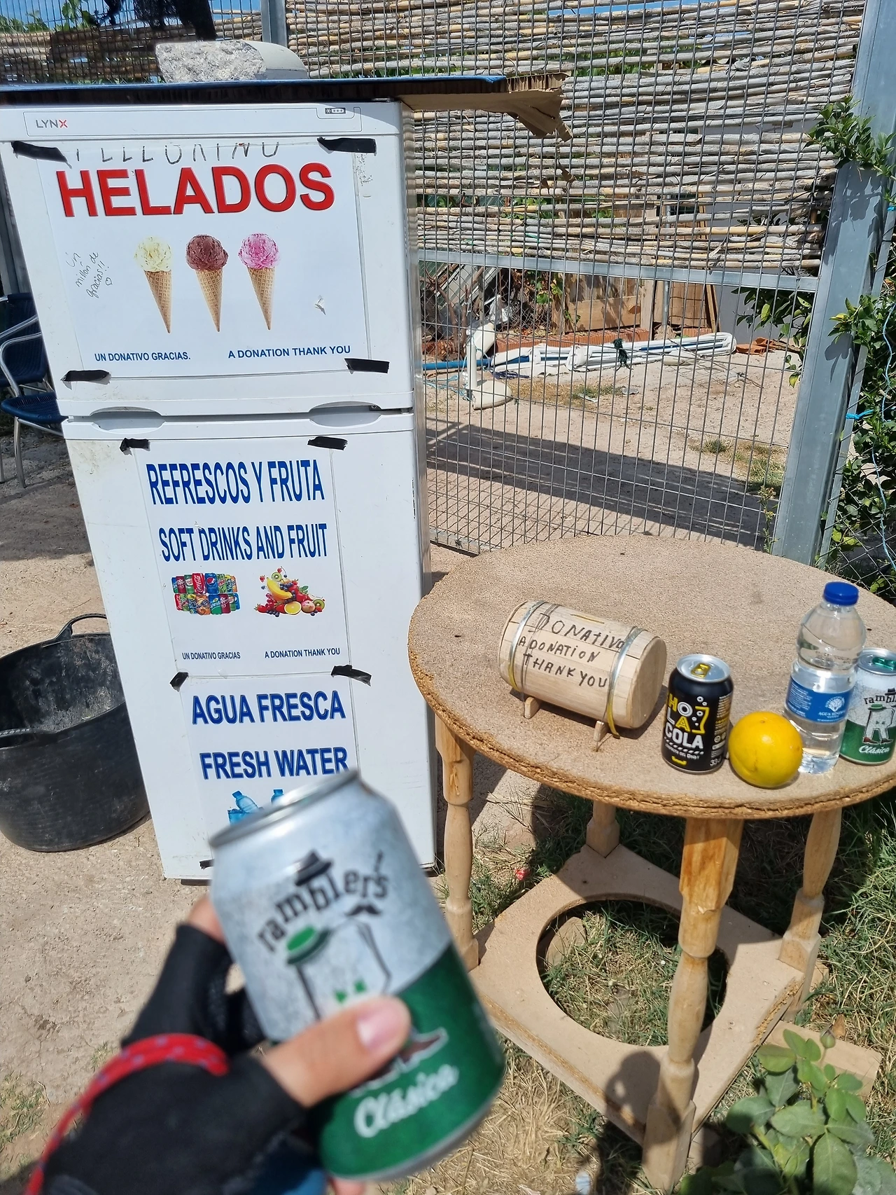 산티아고 순례길 위에는 크고 작은 도네이티브 bar가 있다. 즉 기부제로 운영되는 bar이다. 자신이 원하는 만큼 먹을 수 있고 그에 맞는 기부 금액을 지불하면 된다. 땡볕을 걷다가 언제쯤 마을이 나올까 생각이 들 때쯤, 저기 멀리서 아른하게 테이블이나 냉장고가 보일 때가 있다. 도네이티브 bar라는 게 있는지 몰랐던 처음에는 신기루인가 착각이 들었다. 음료나 과일이 있는 걸 발견하면 마치 사막에 오아시스를 만난 것처럼 세상 감사하다. 뜬금없이 길 위에 이렇게 시원한 음료가 있다니! 아직 마을까지 갈 길이 한참인데 배를 채울 먹거리가 있다니!