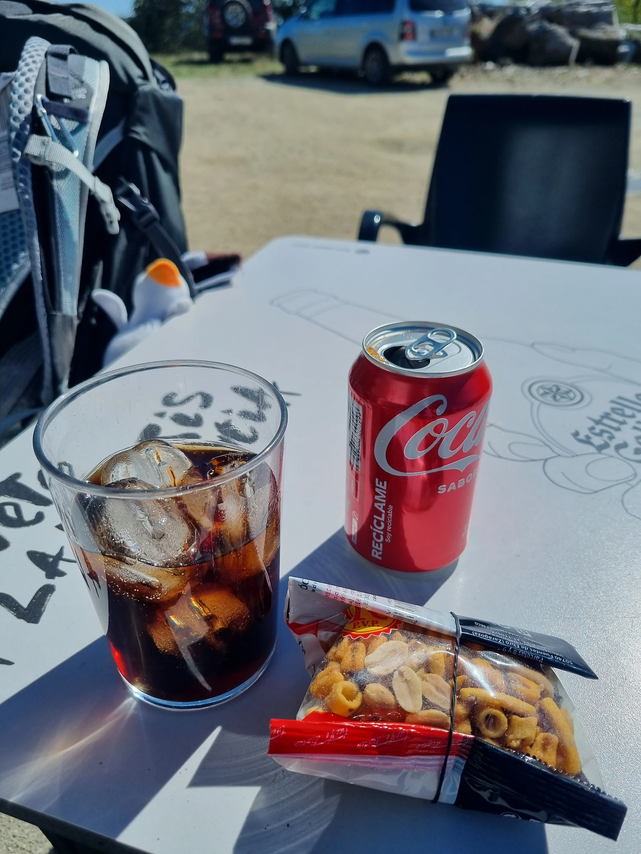 그래서 계속 올랐다. 이 한 언덕을 오르니 거짓말처럼 bar하나가 있었다. 산 꼭대기 bar였다. 시원한 콜라를 주문하고 얼음컵도 달라고 했다. 야외 테이블에 앉아서 배낭을 내려놓고 콜라를 땄다. 거기에 어제 사서 온 견과류까지 먹었다. 정말 천국 같았다.