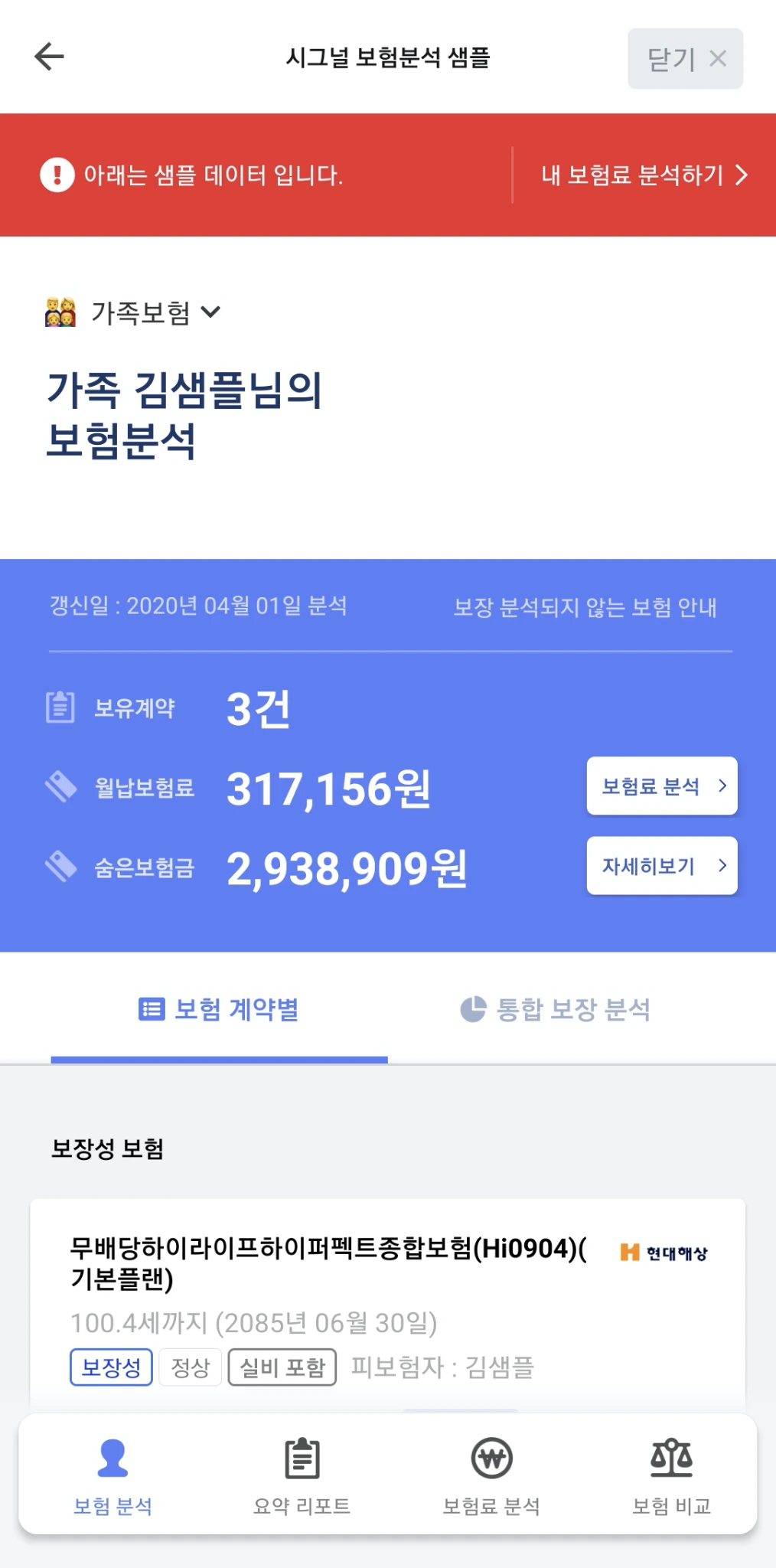 내가 어떤 서비스를 제공 받을 수 있는 지 모르는데, 꽤 긴 여정을 끝까지 가긴 어렵습니다. 중간에 이탈한 고객에게 푸시를 보내서 실제 내 보험 데이터를 가져왔을 때 볼 수 있는 분석 샘플을 보여줍니다.