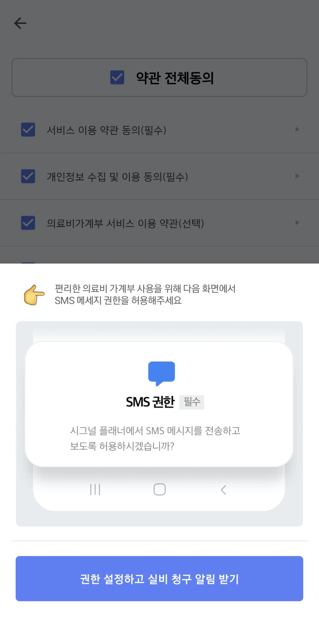 생각보다 쉬운 방법이 있었습니다. 가입 과정에서 해당 기능에 대한 안내와 함께 권한을 요청합니다.