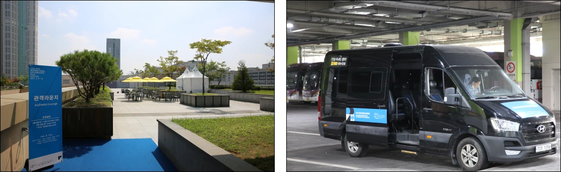 아무도 없어서 앉아있기 머쓱한 관객 라운지를 구경만 하고 셔틀을 타고 고양 아람누리로 이동합니다. 아람누리에서는 특별 상영회와 DMZ 인더스트리(제작, 투자, 배급 등의 다큐멘터리 산업 마켓) 등이 열립니다. 인더스트리는 13일부터 열리지만 그래도, 셔틀도 타볼 겸 이동합니다.
